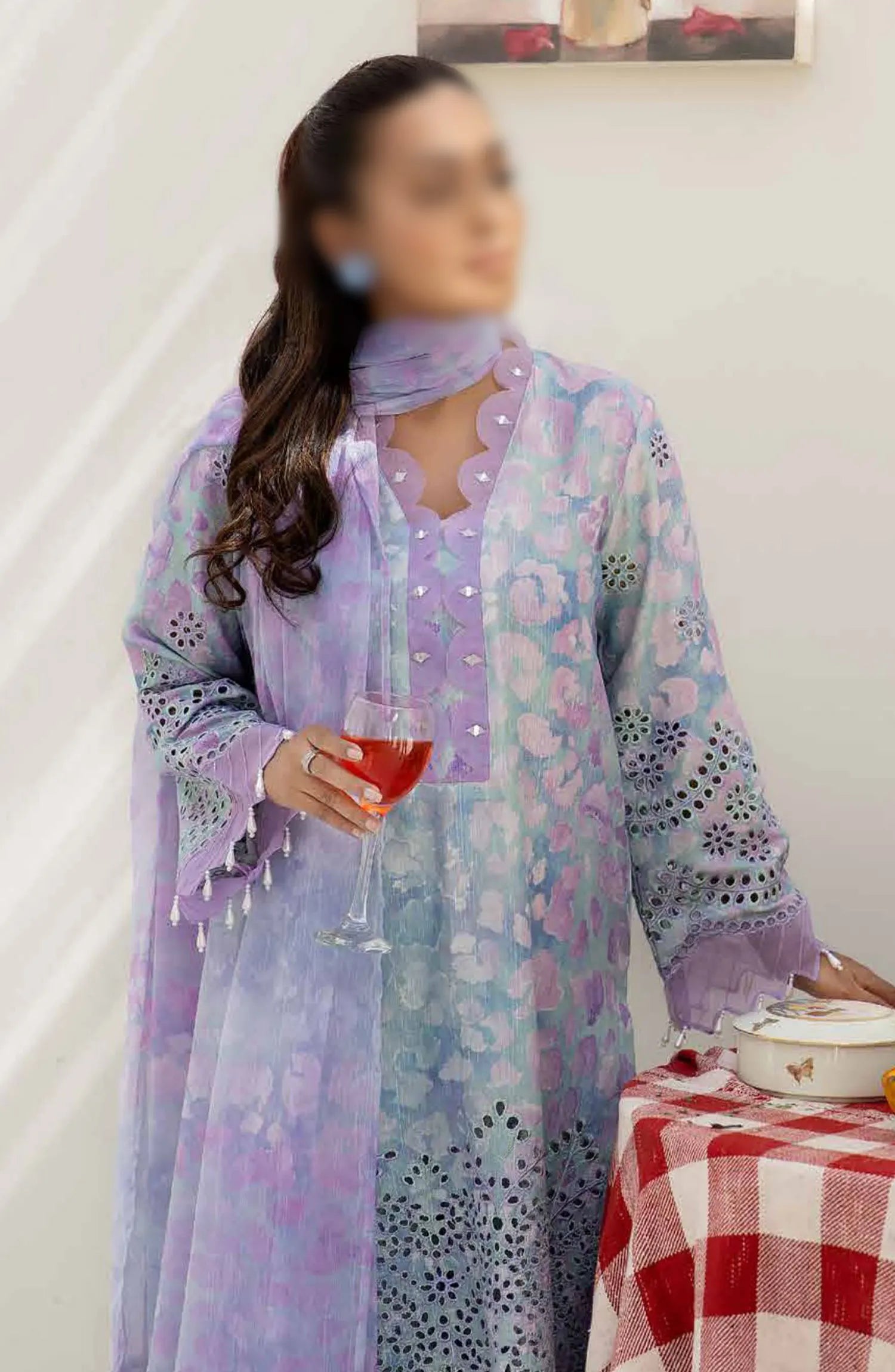 Lamisah by Lavish Premium Afsana Embroidered Chiffon Unstitched 3 Piece Suit - D-06 Lilac Reverie - LP25AFS - Purple - Luxury Collection