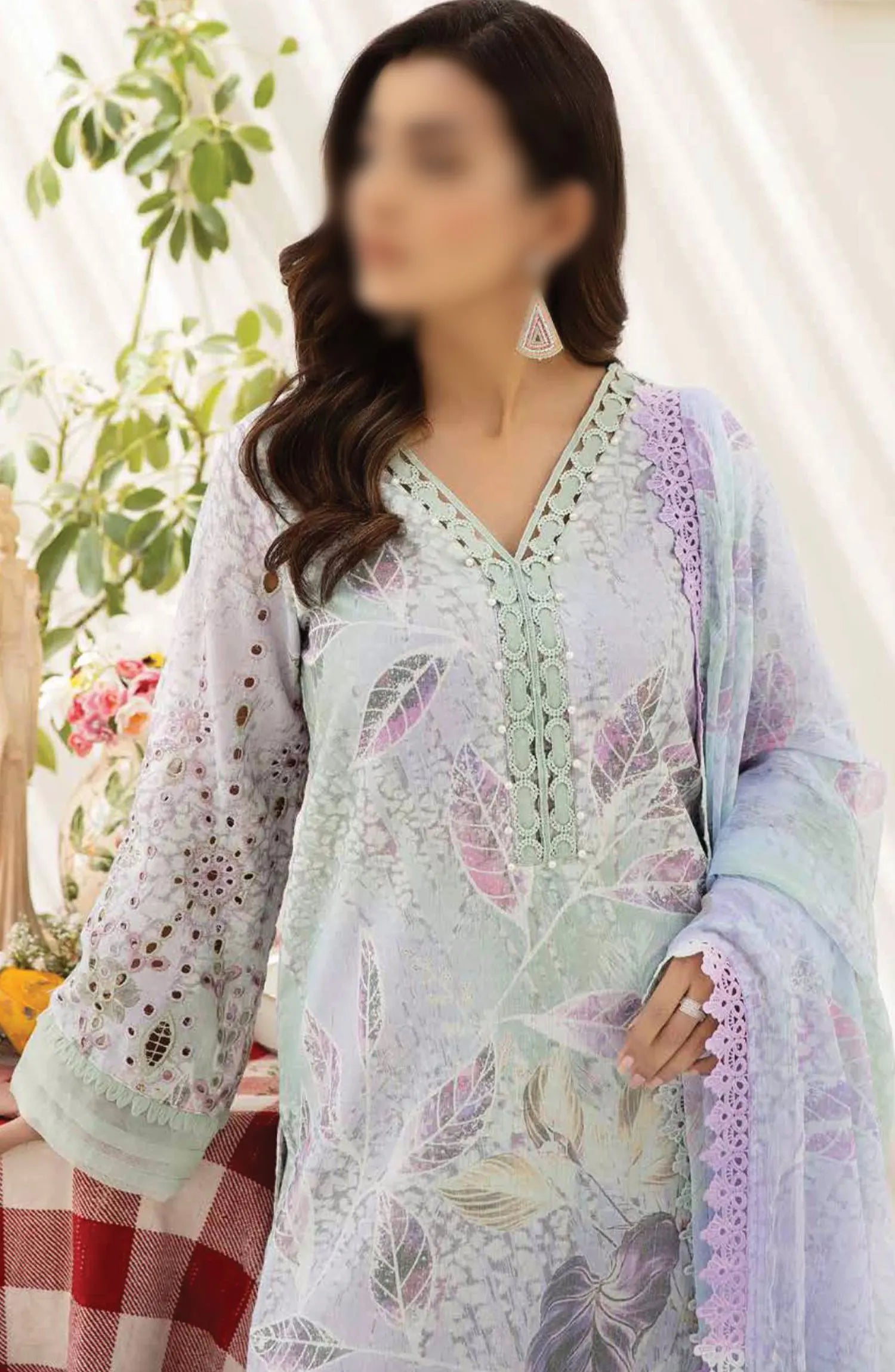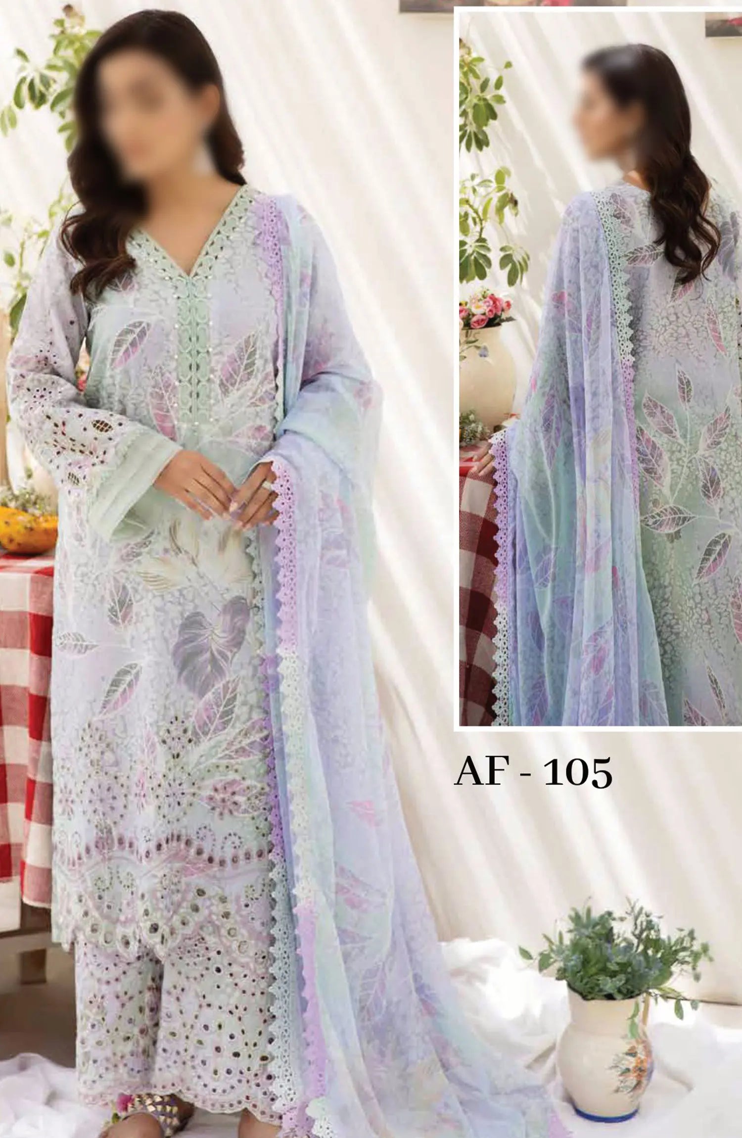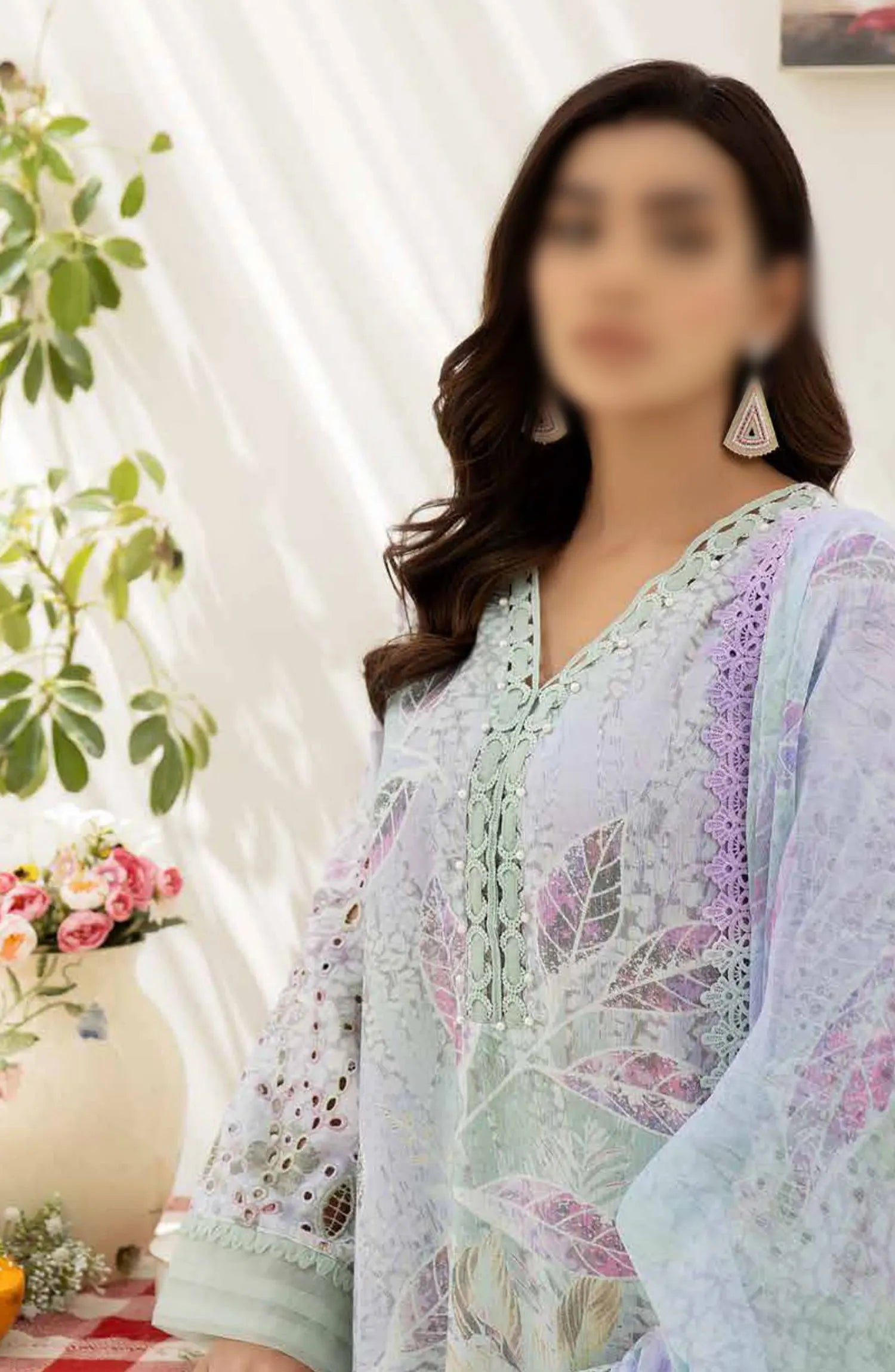 Afreen Embroidered Chikankari Lawn Collection 2024 has been styled in the image for photography and illustrative purposes.
