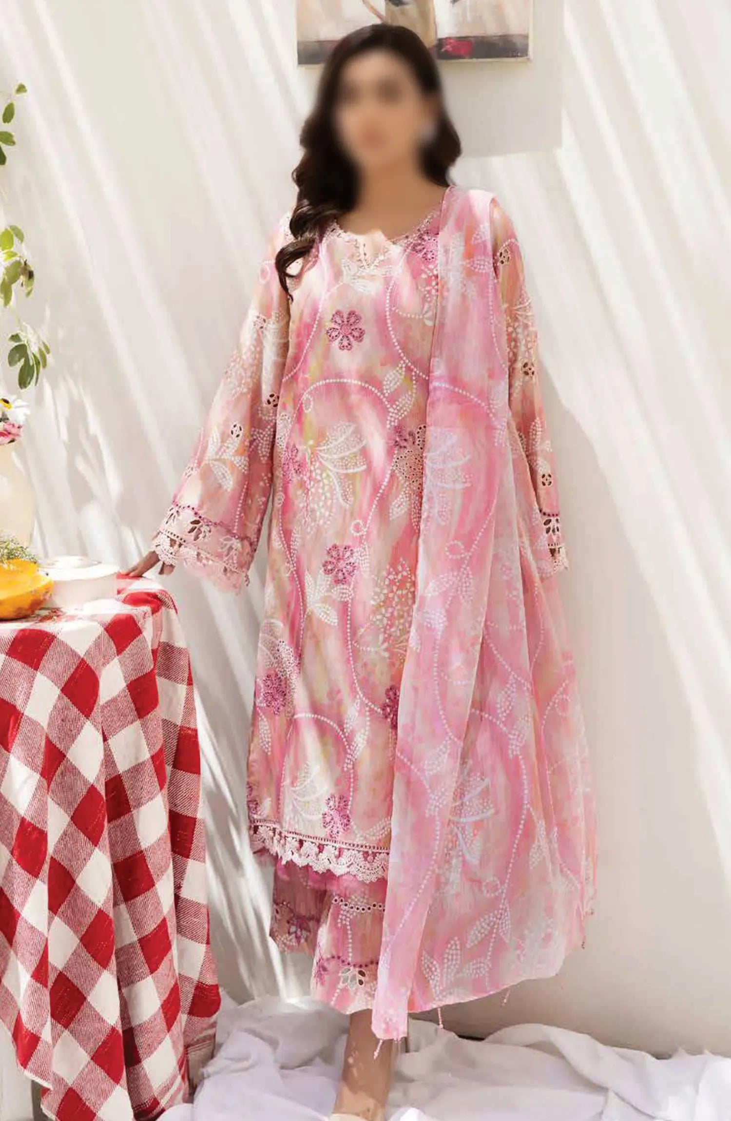 Lamisah by Lavish Premium Afsana Embroidered Chiffon Unstitched 3 Piece Suit - D-10 Blush Petal - LP25AFS - Pink - Luxury Collection