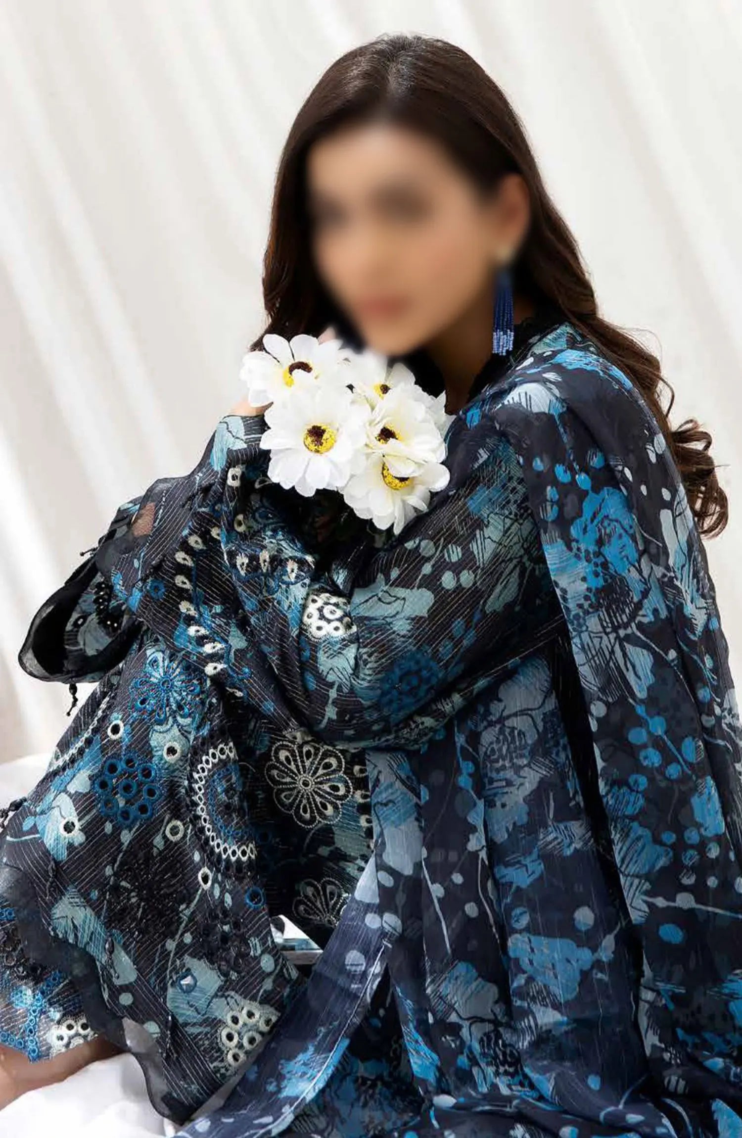 Lamisah by Lavish Premium Afsana Embroidered Chiffon Unstitched 3 Piece Suit - D-03 Frosted Serenity - LP25AFS - Blue - Luxury Collection