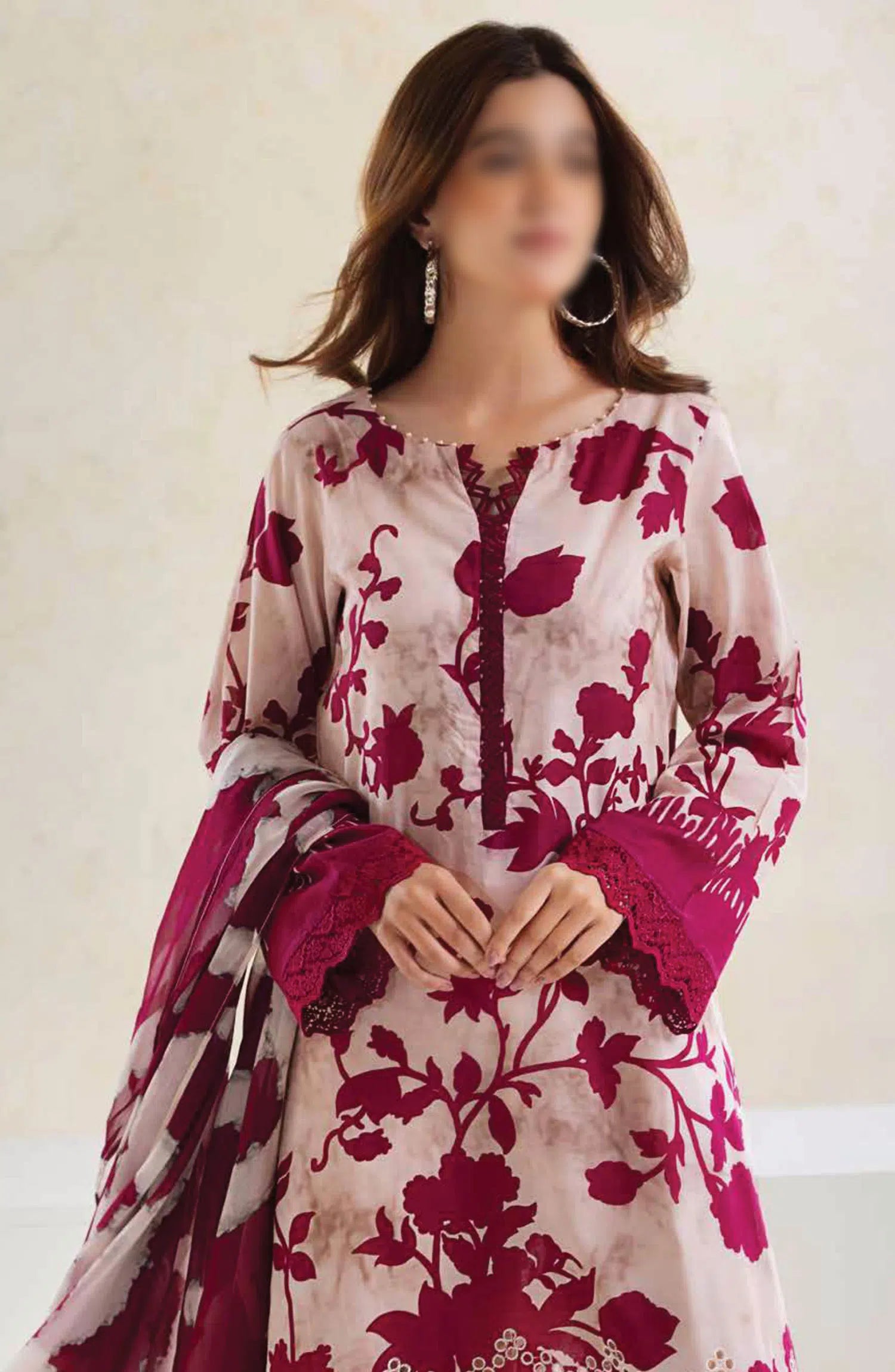 3 Piece Embroidered Chikankari Lawn Suit with Chiffon Dupatta .