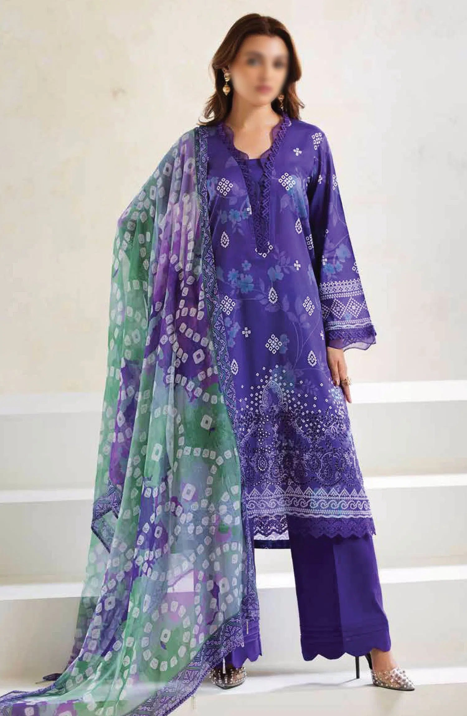 3 Piece Embroidered Chikankari Lawn Suit with Chiffon Dupatta .