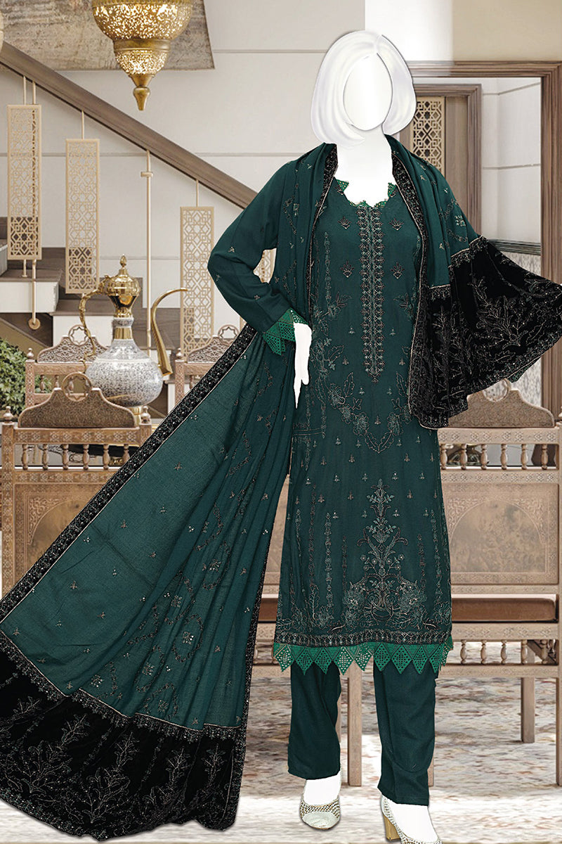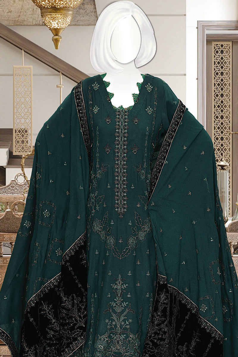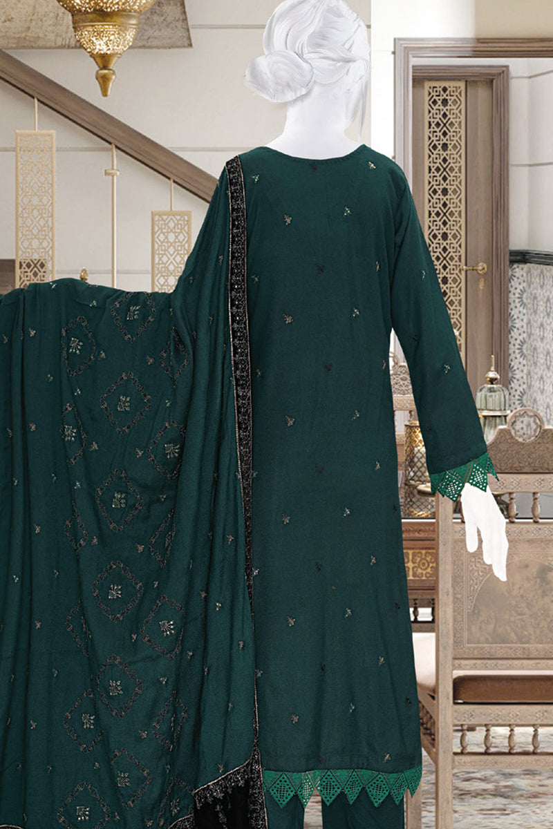 Modest Embroidered Khaddar Stitched 3 Piece Suit - 9990-Blk - MOD25WNT - Black - Winter Collection