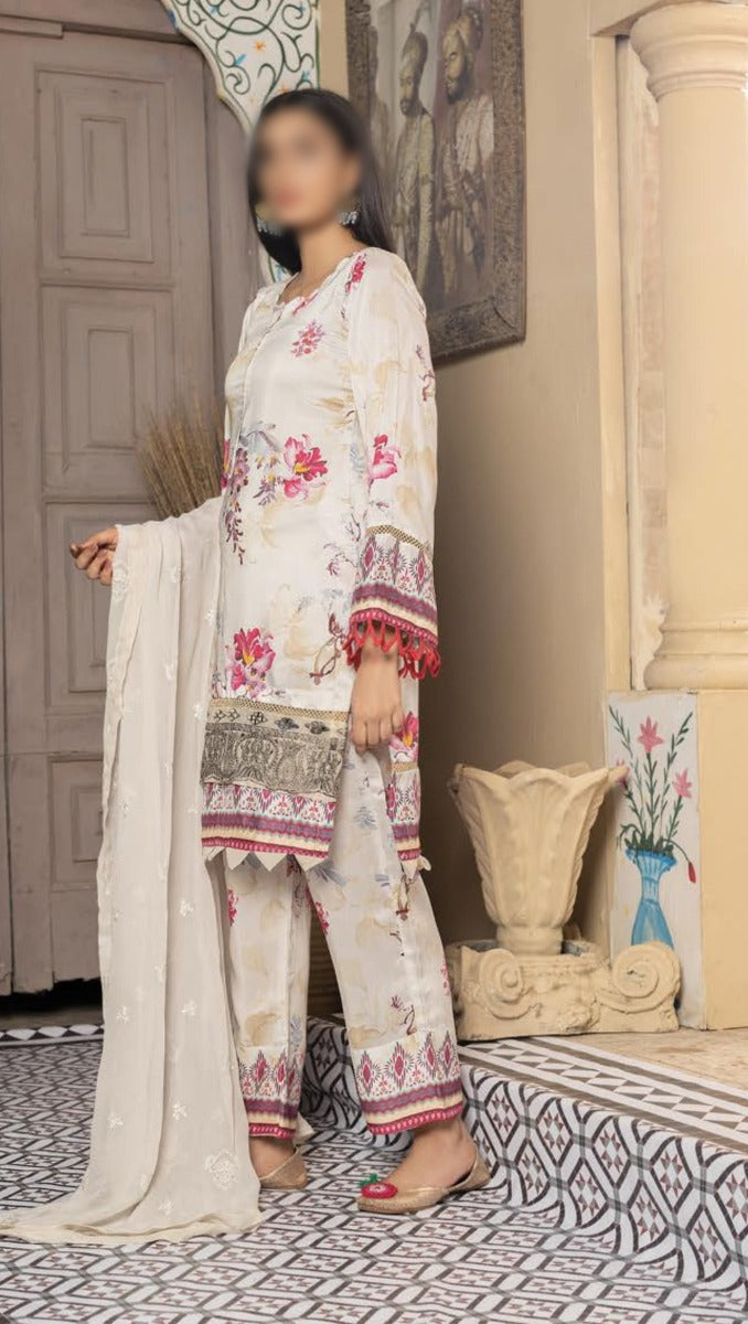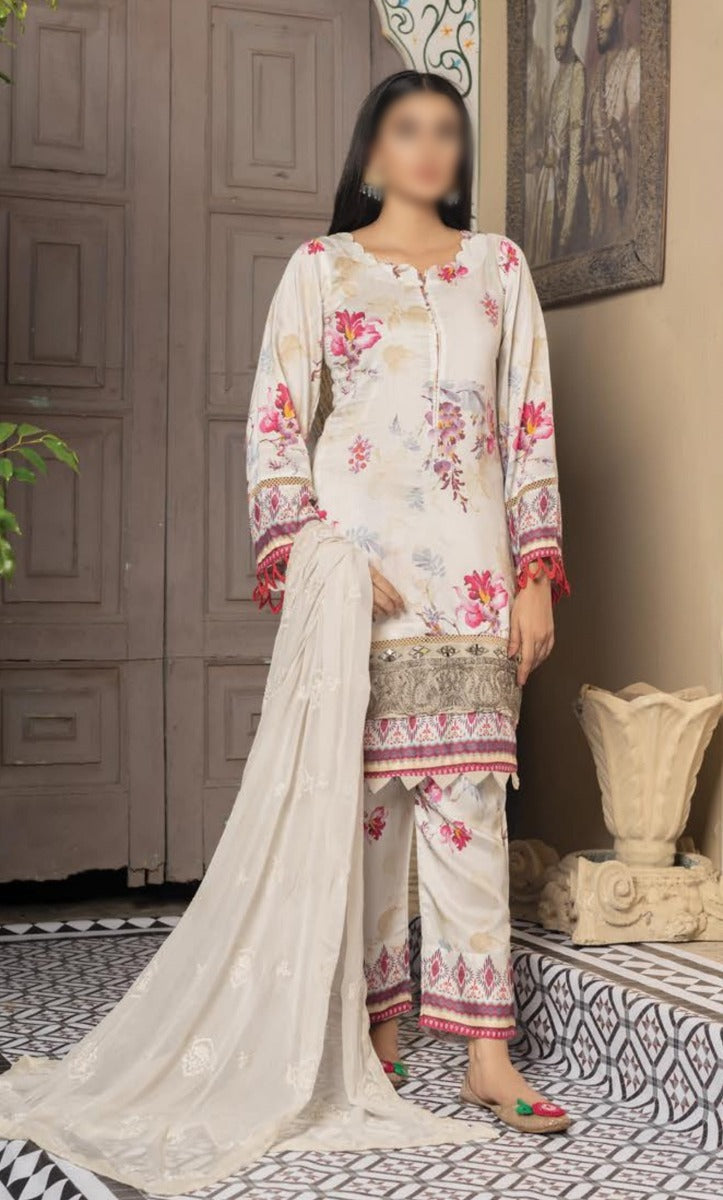 Afreen Embroidery Silk Viscose Collection with CHiffon Dupatta has been styled in the image for photography and illustrative purposes.