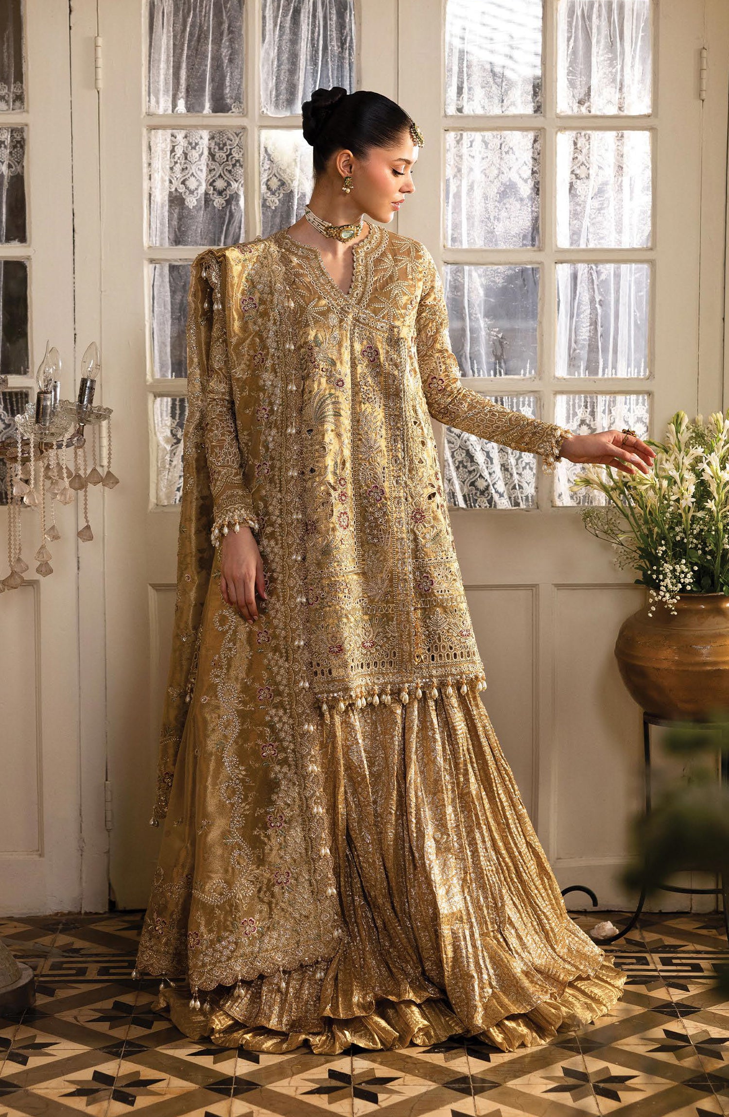 Luxury Festive Embroidered Tissue Zari Unstitched 3 Piece Suit