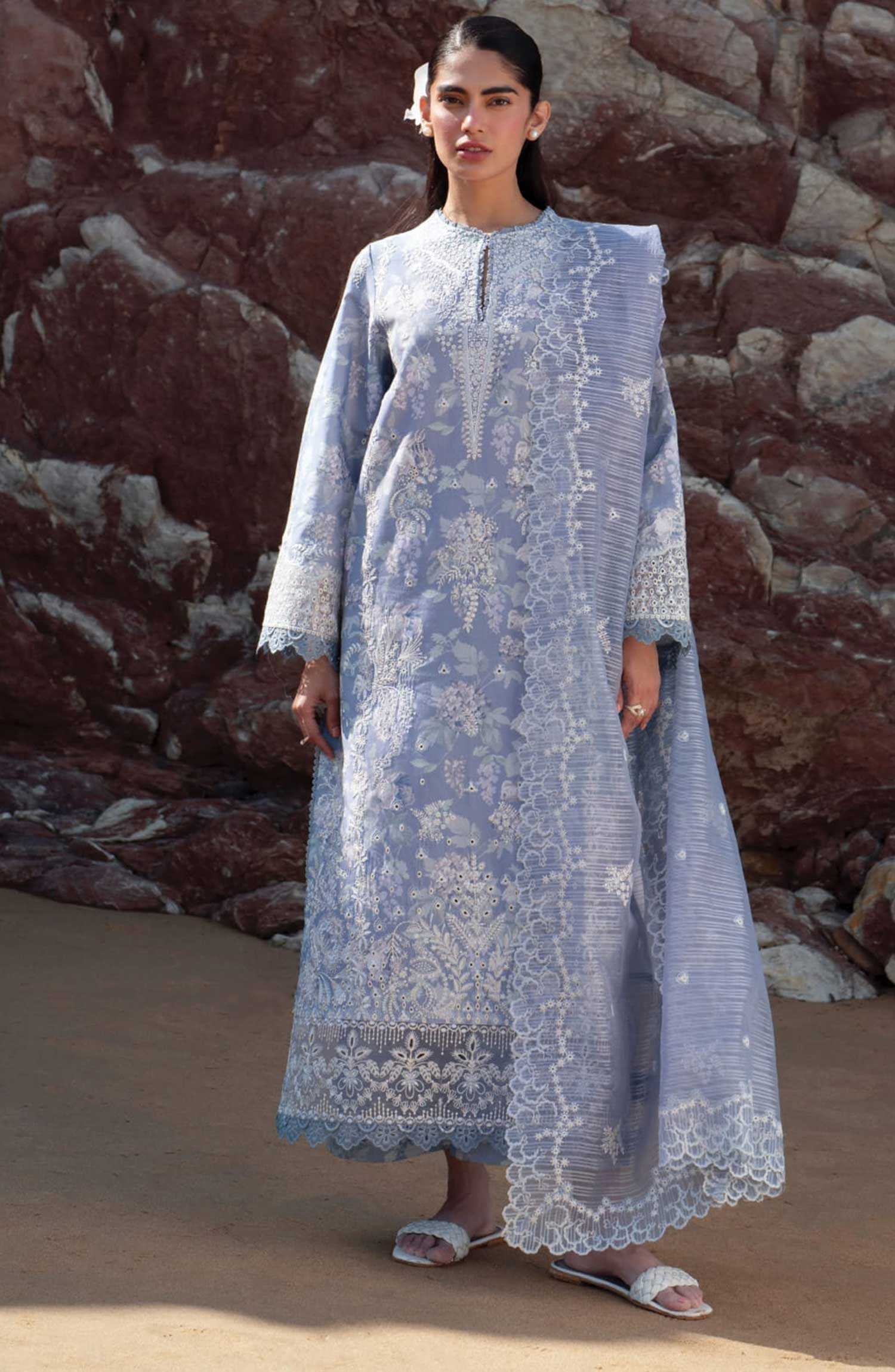 EMBROIDERED DIGITAL PRINTED SLEEVES 2 PCS LAWN