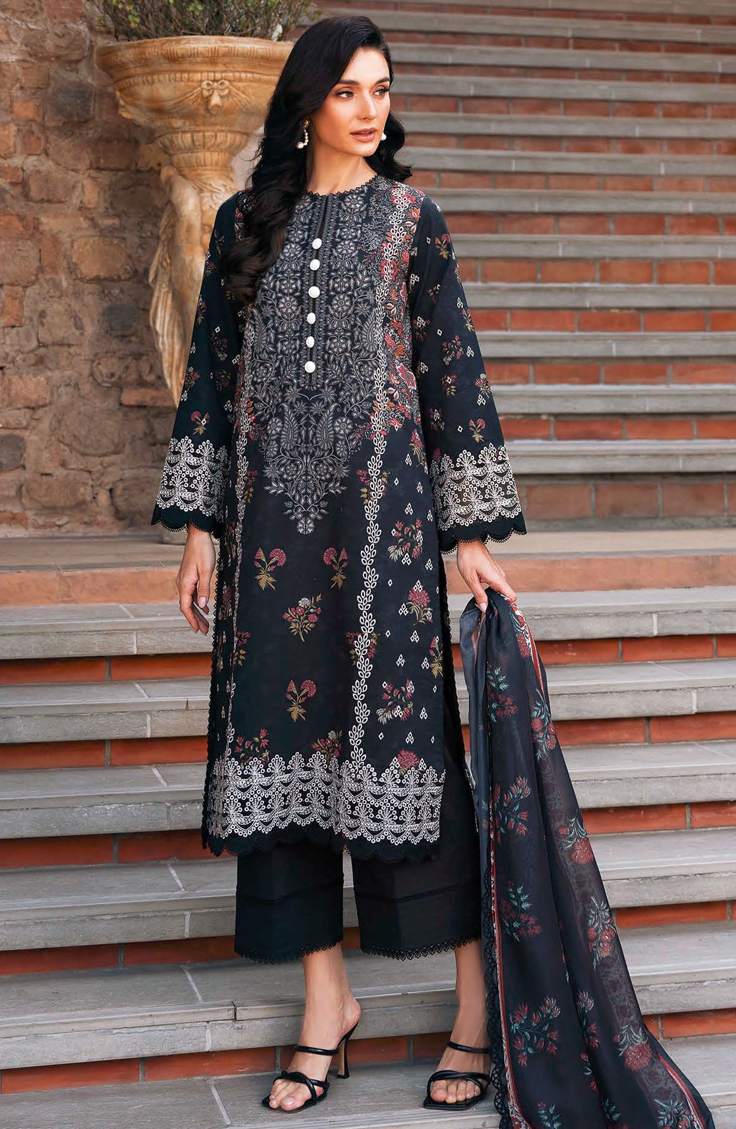 Afrozeh Embroidered Lawn Unstitched 3 Piece Suit - Black - Anisa-B - AFR25DM - Summer Collection