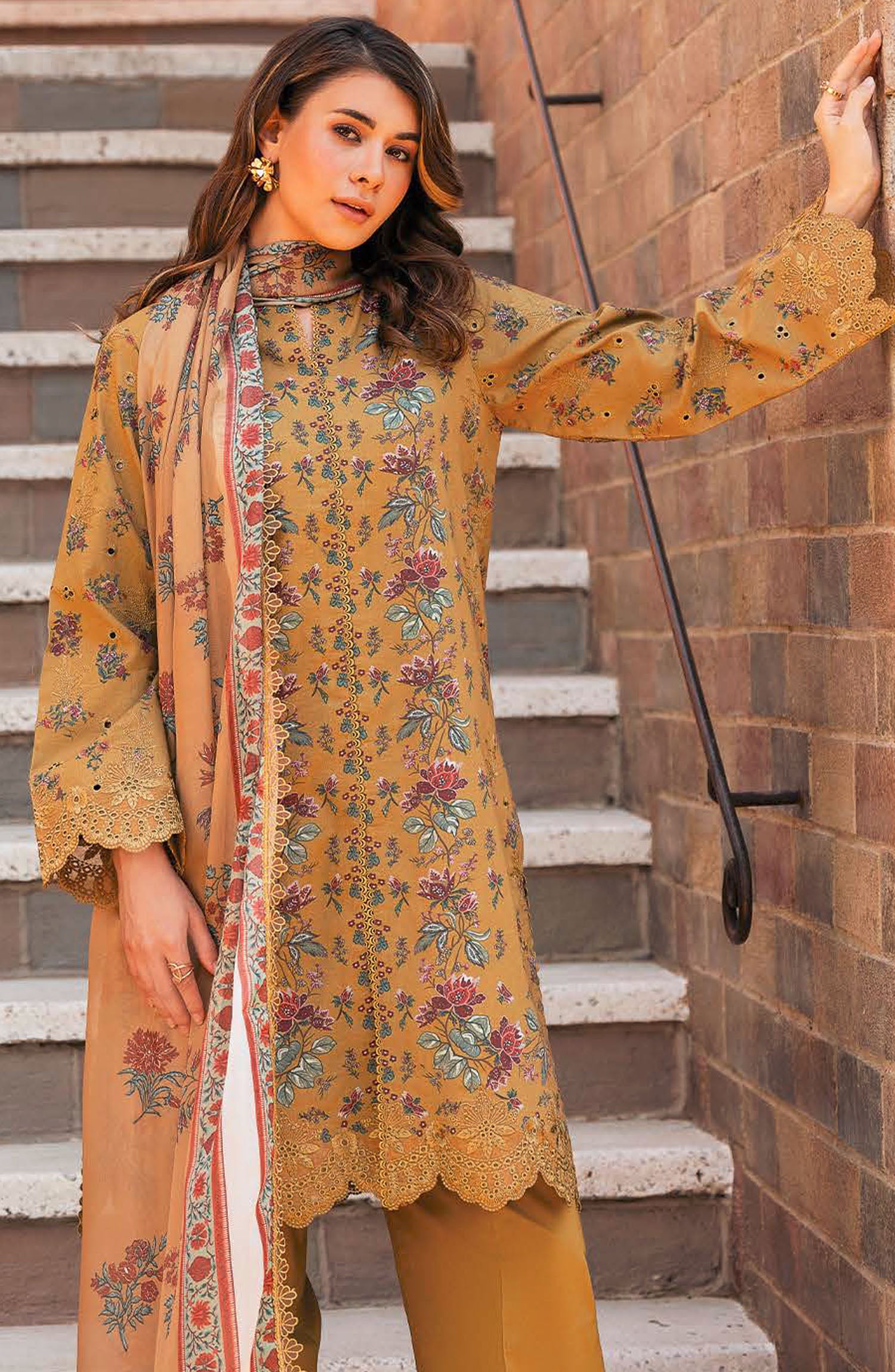 Afrozeh Embroidered Lawn Unstitched 3 Piece Suit - Mustard - Lorien-B - AFR25DM - Summer Collection