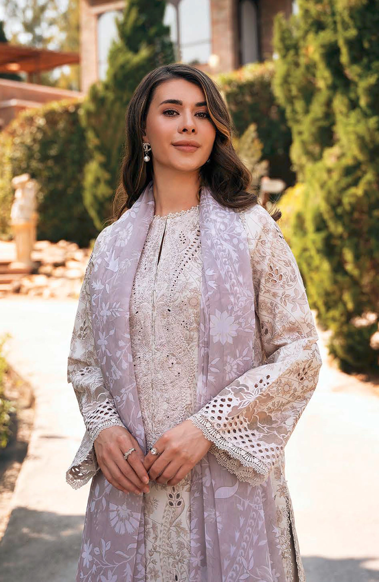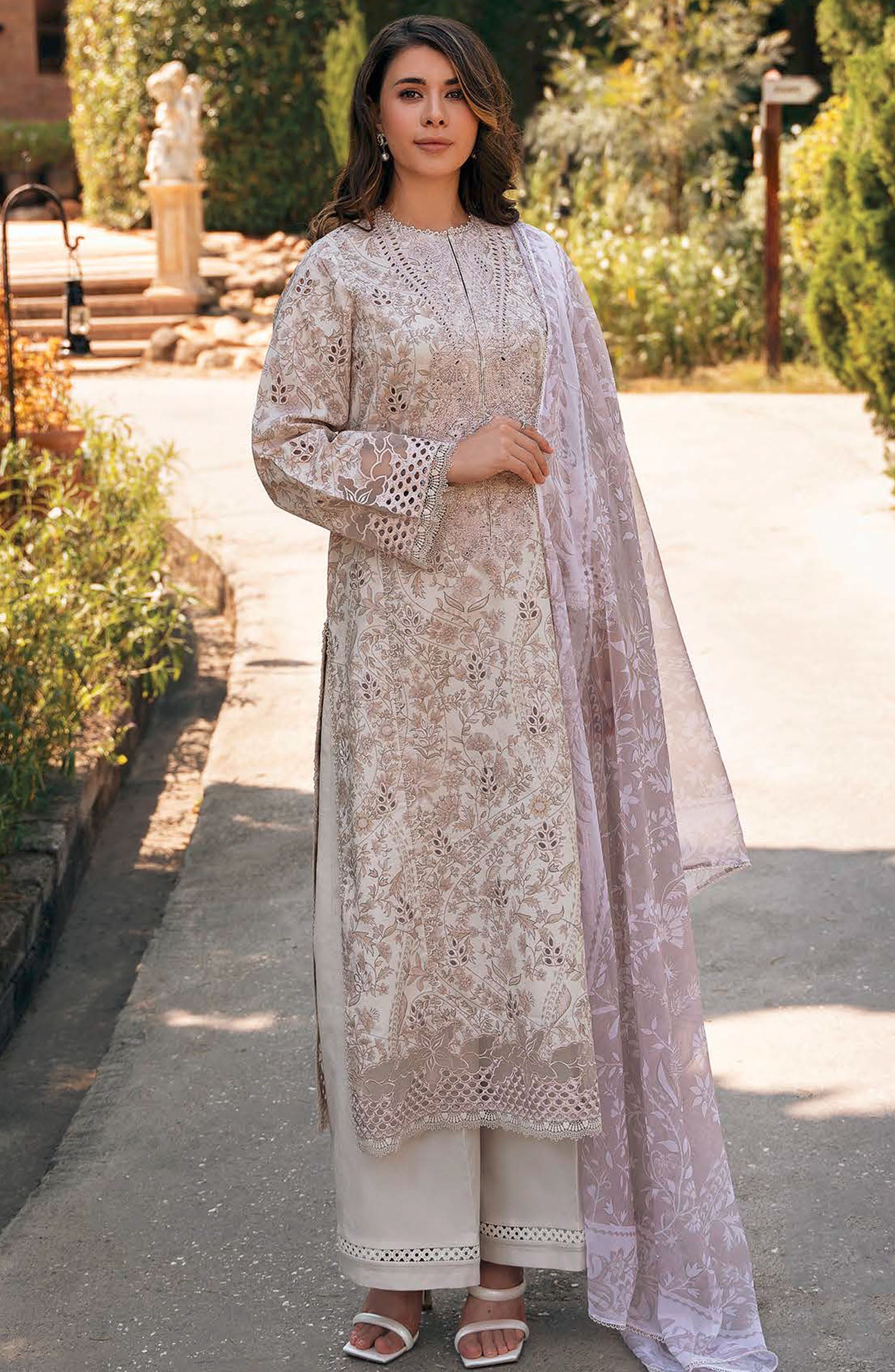 Afrozeh Embroidered Lawn Unstitched 3 Piece Suit - Off White - Lunetta-A - AFR25DM - Summer Collection