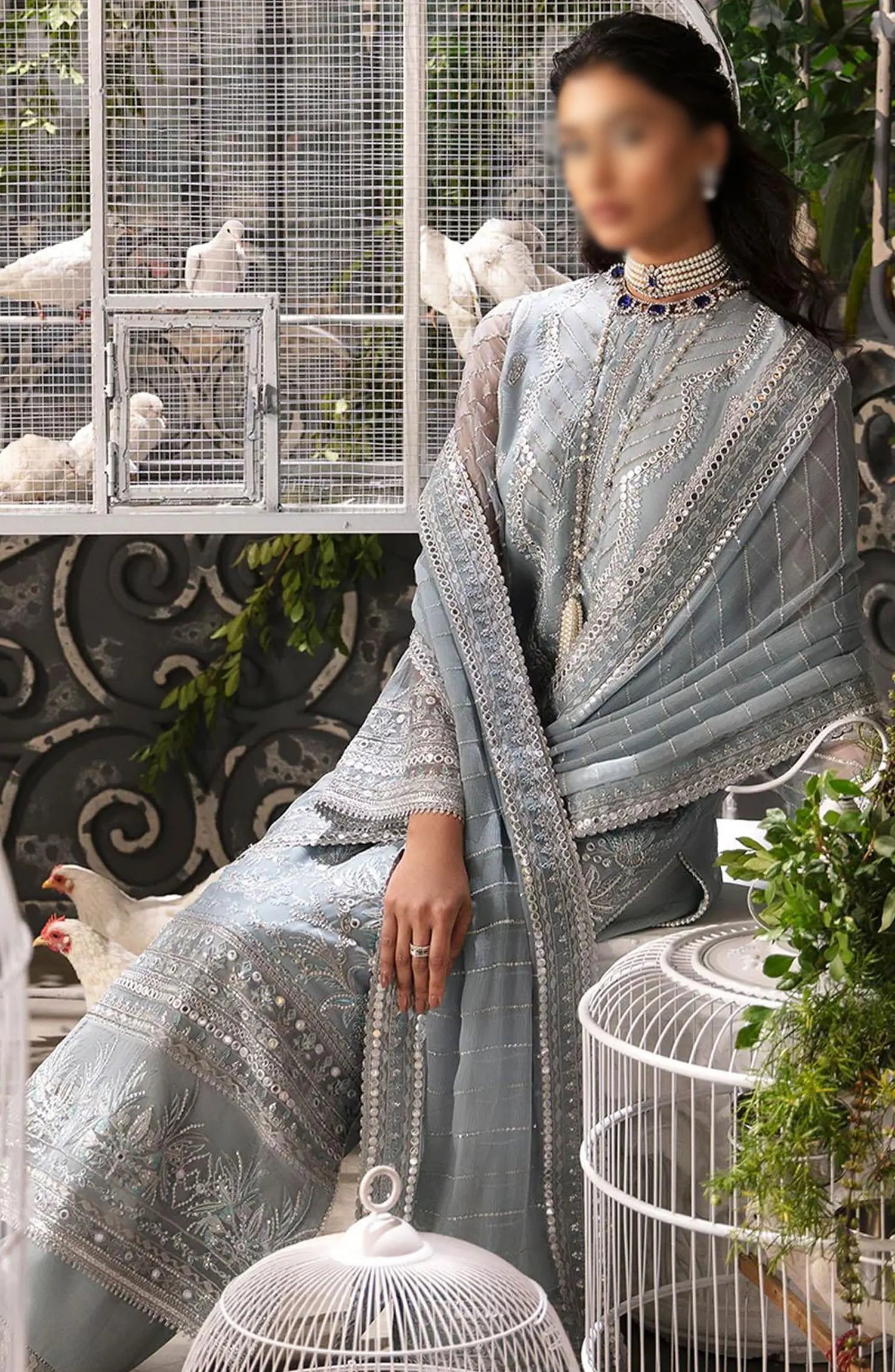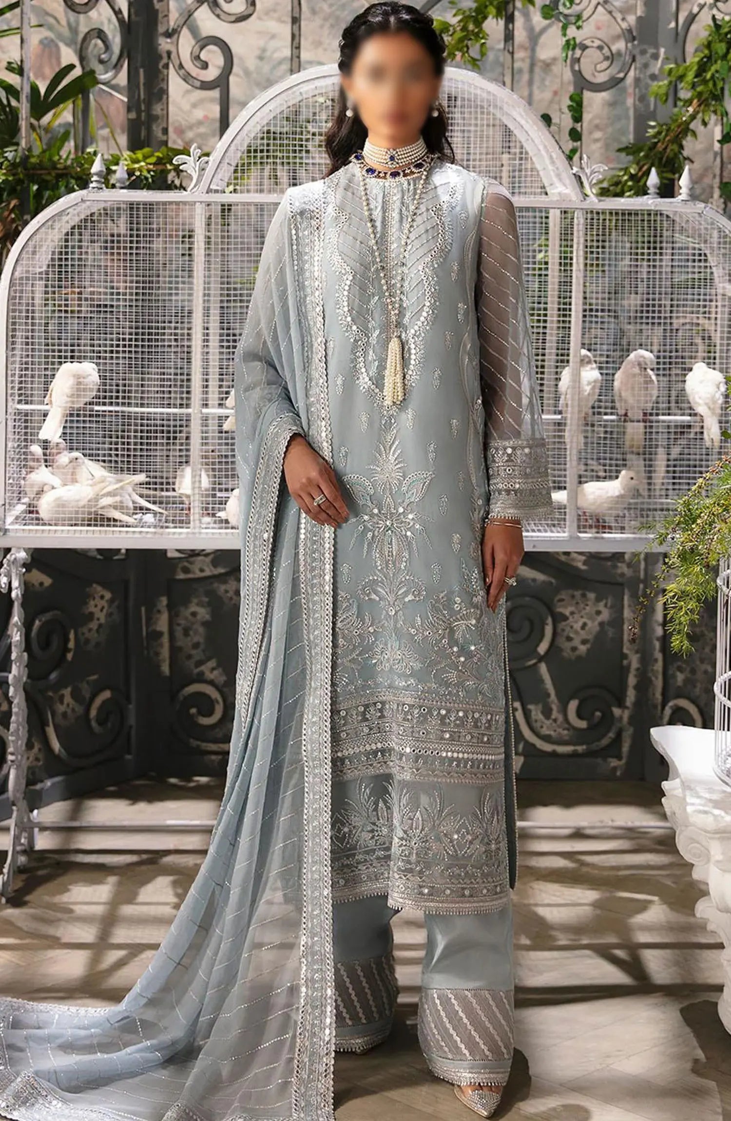 The standard style comes as a long-sleeved kameez with dupatta and trouser/shalwar.