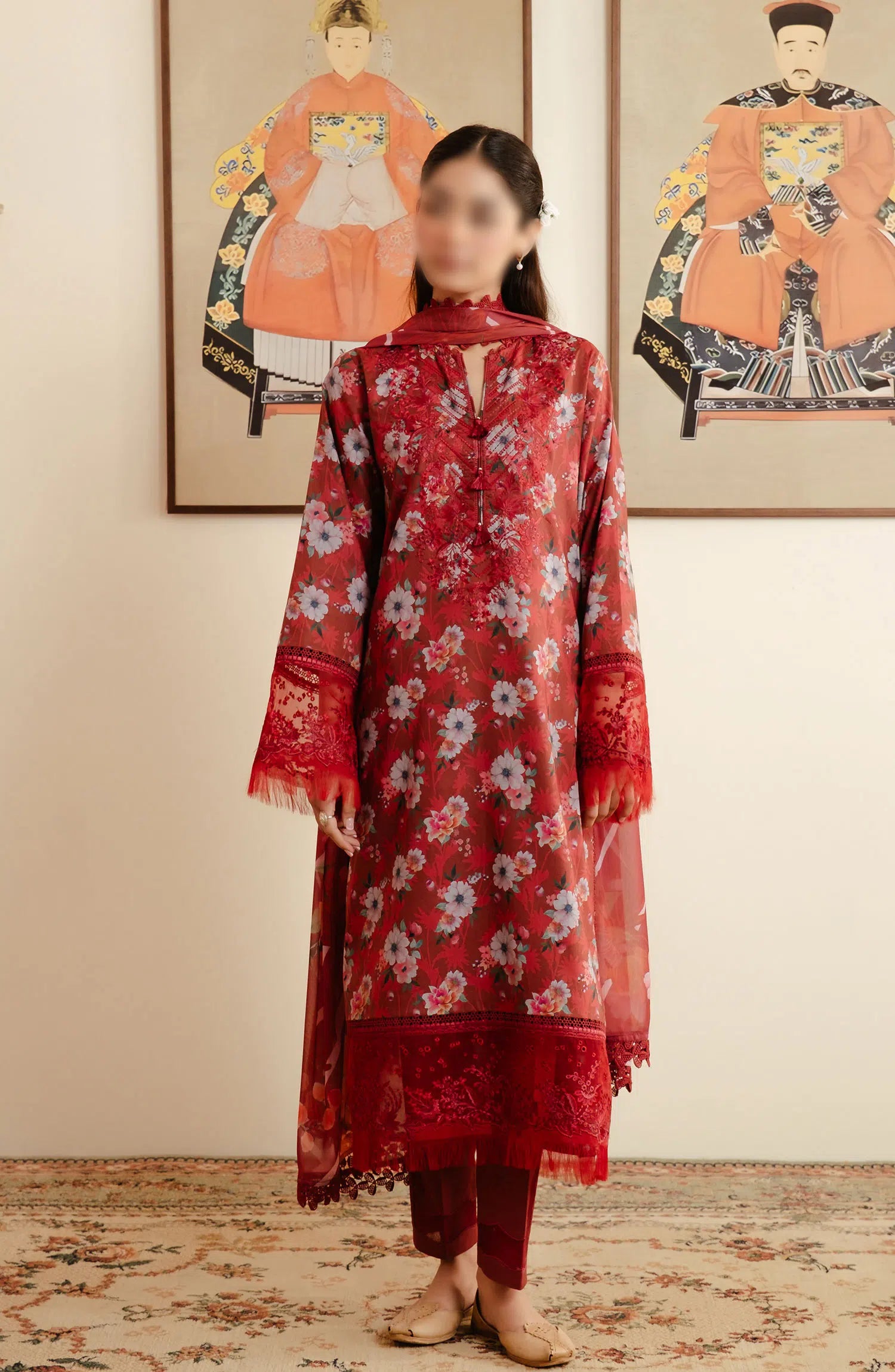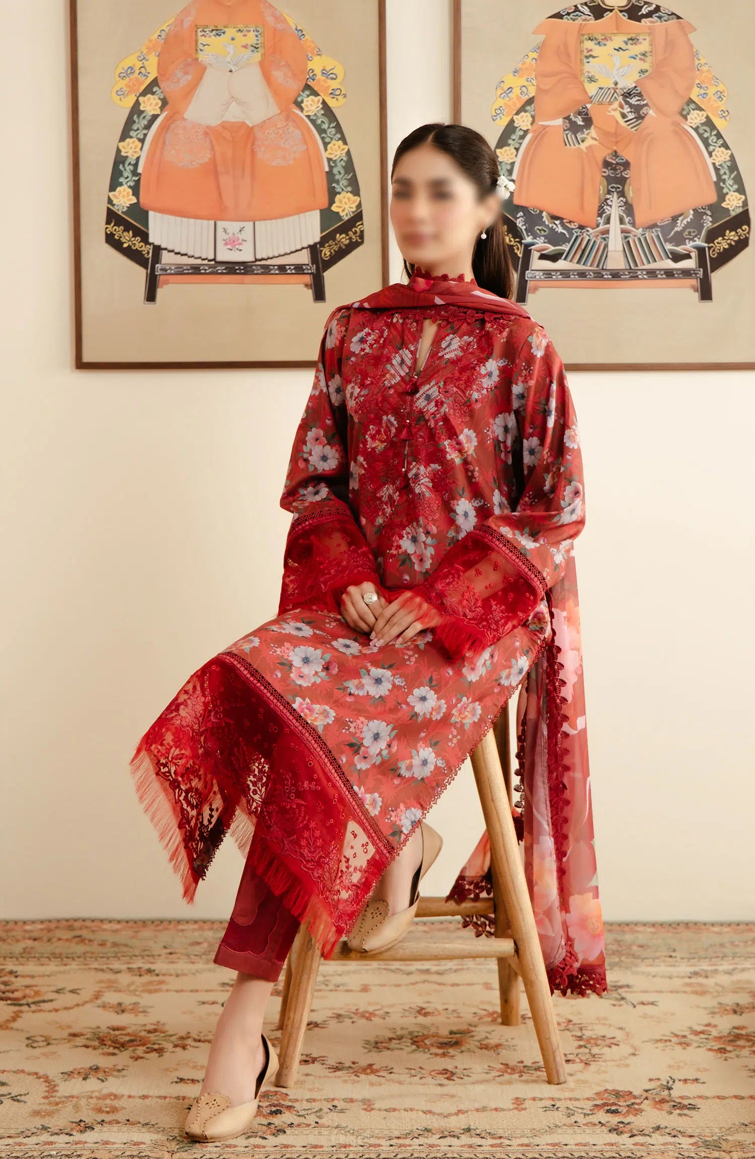 Afrozeh Malina Unstitched Lawn Collection Vol 03 has been styled in the image for photography and illustrative purposes.
