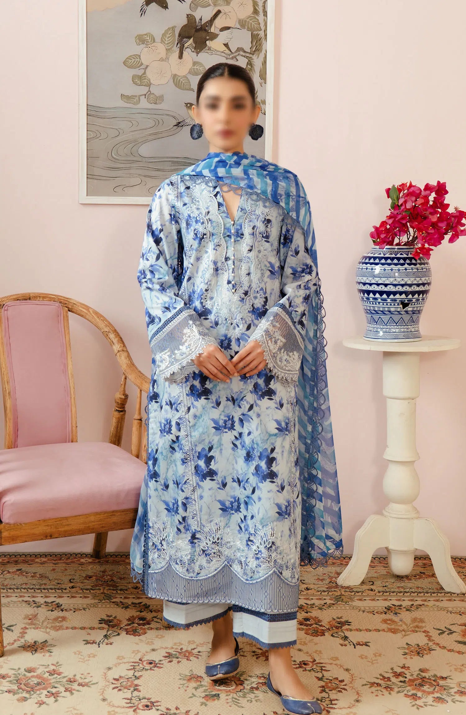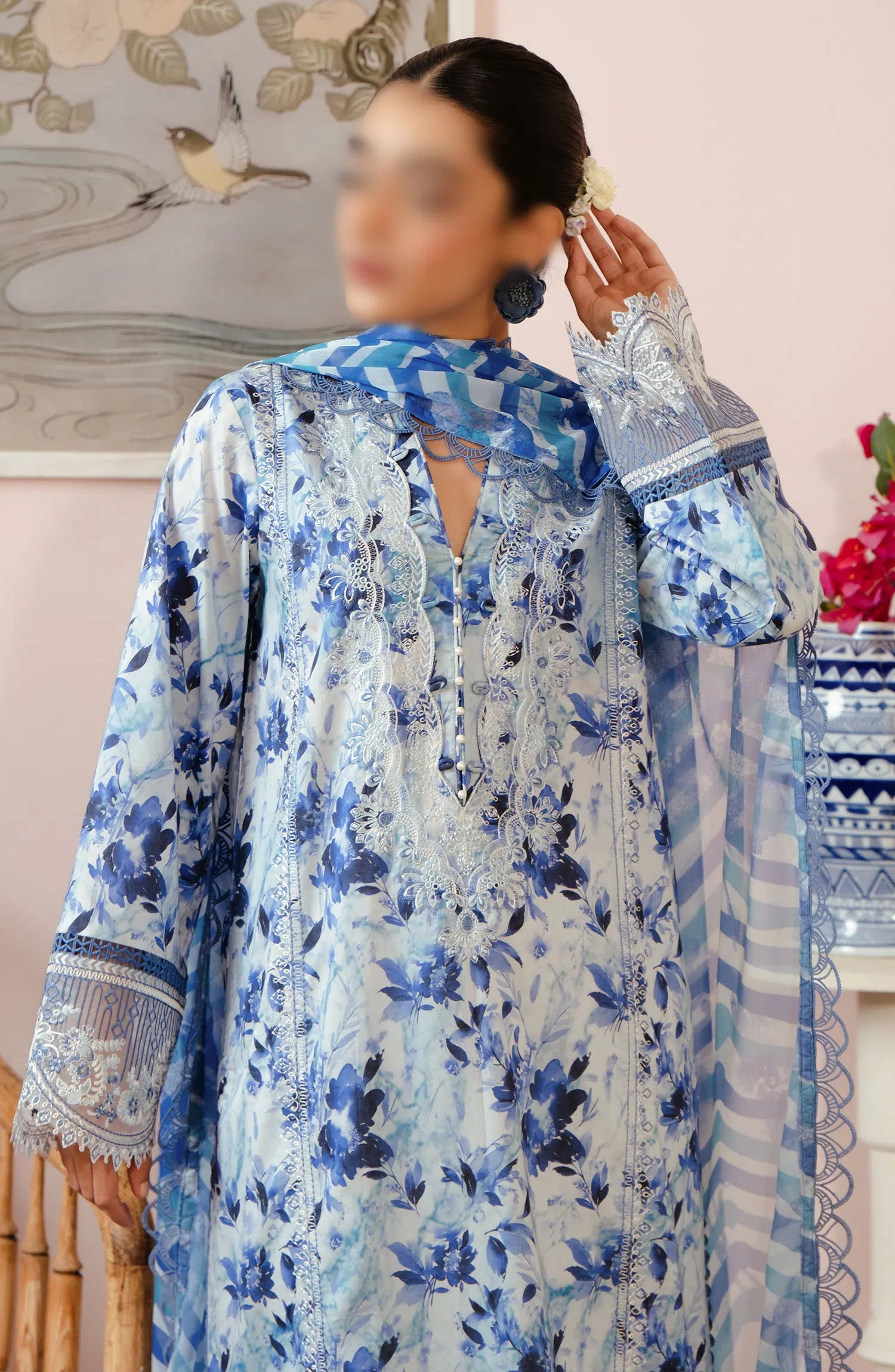 Afrozeh Malina Unstitched Lawn Collection Vol 03 has been styled in the image for photography and illustrative purposes.