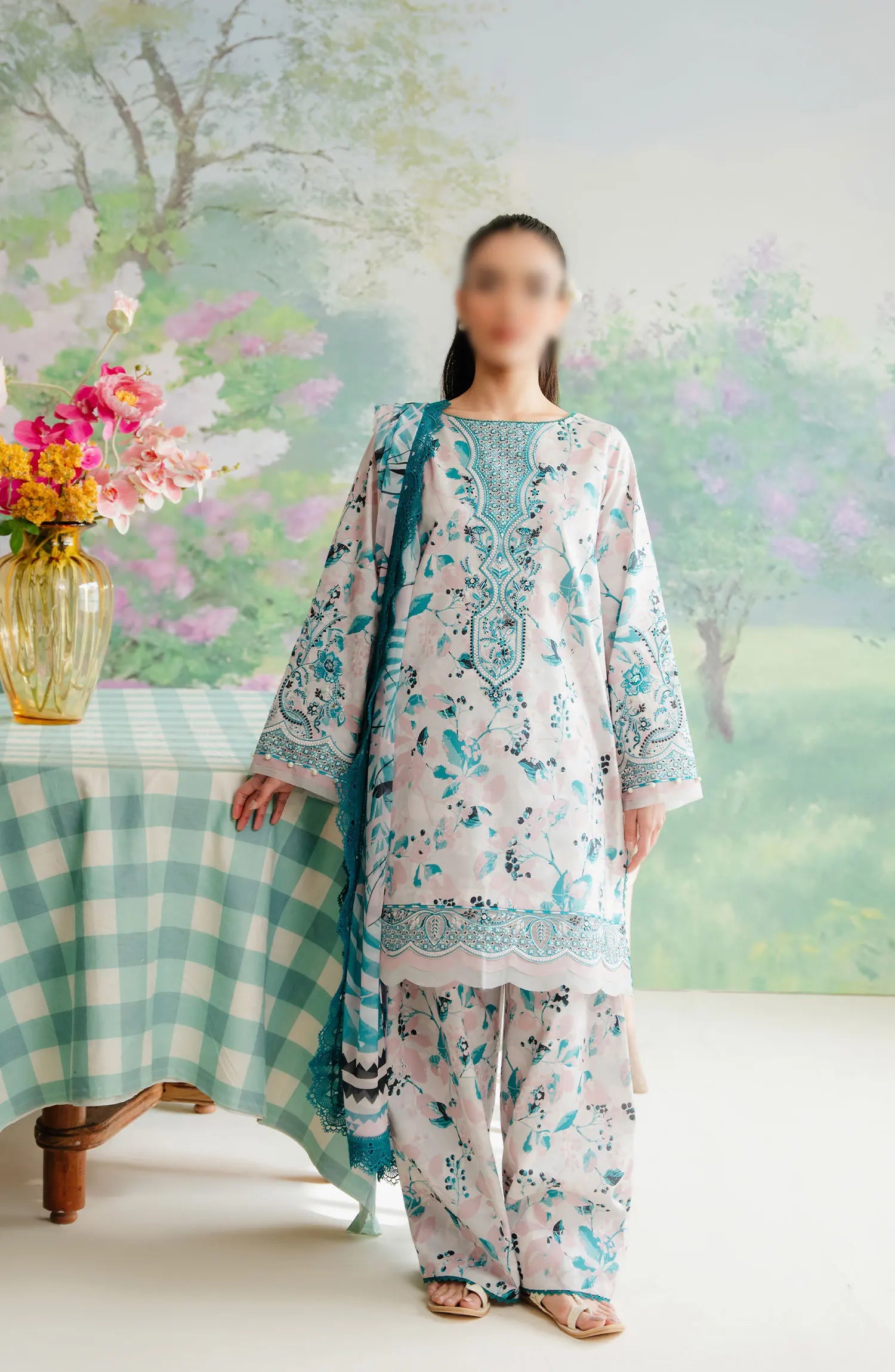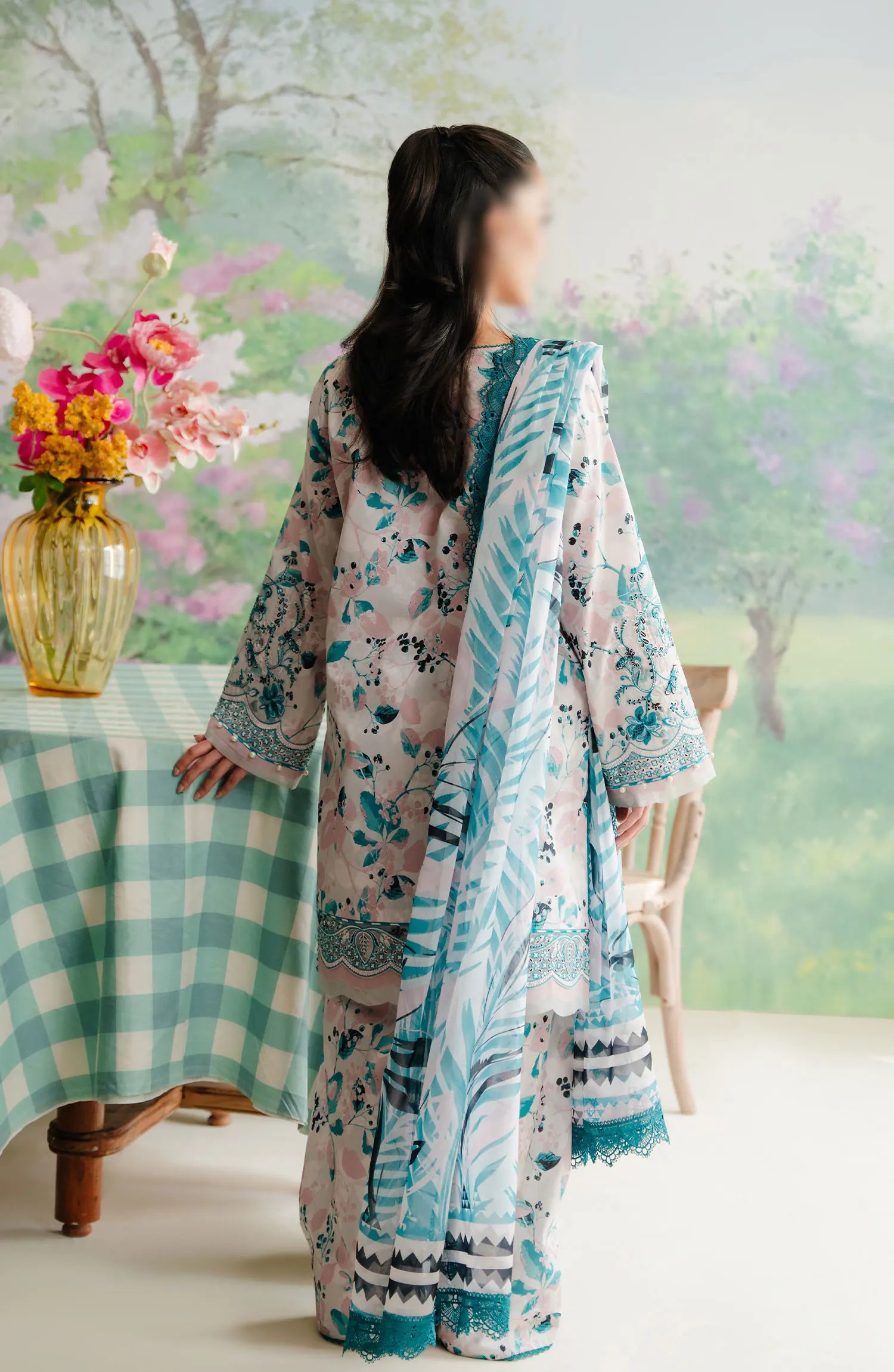 Afrozeh The Floral Charm Unstitched Lawn Collection 2024 has been styled in the image for photography and illustrative purposes.