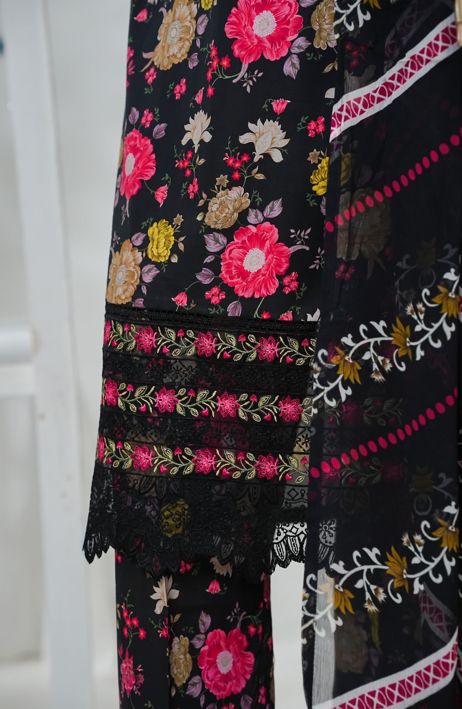 Zari Embroidered Cotton Stitched 3 Piece Suit