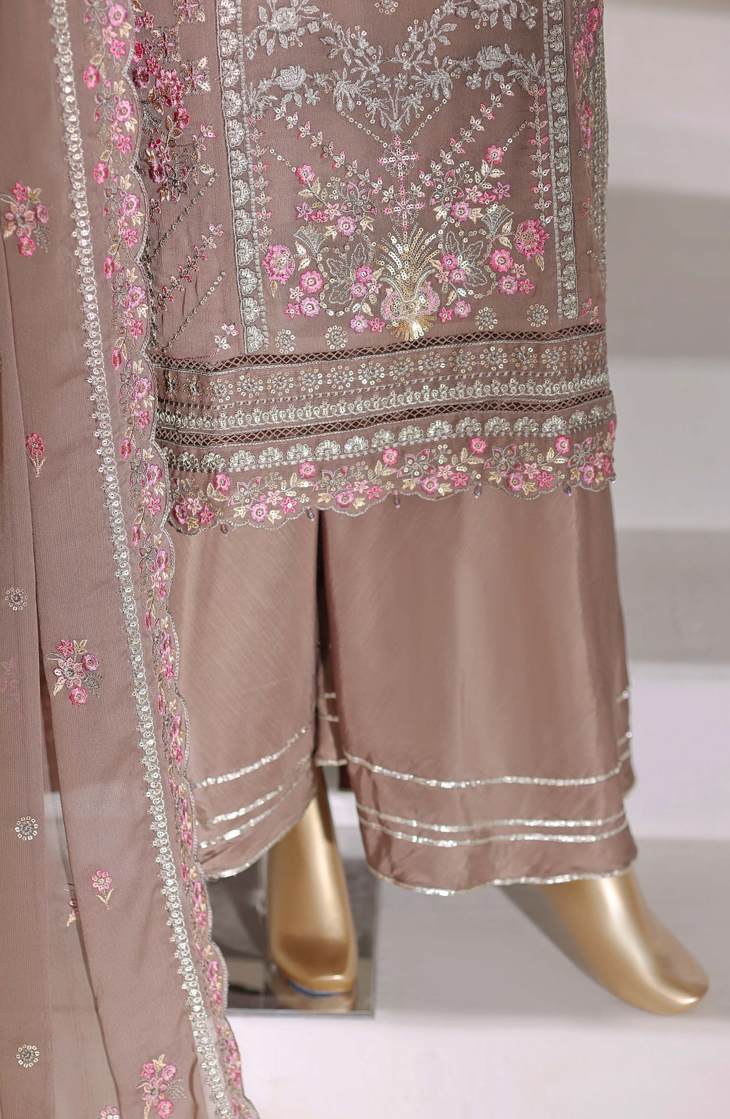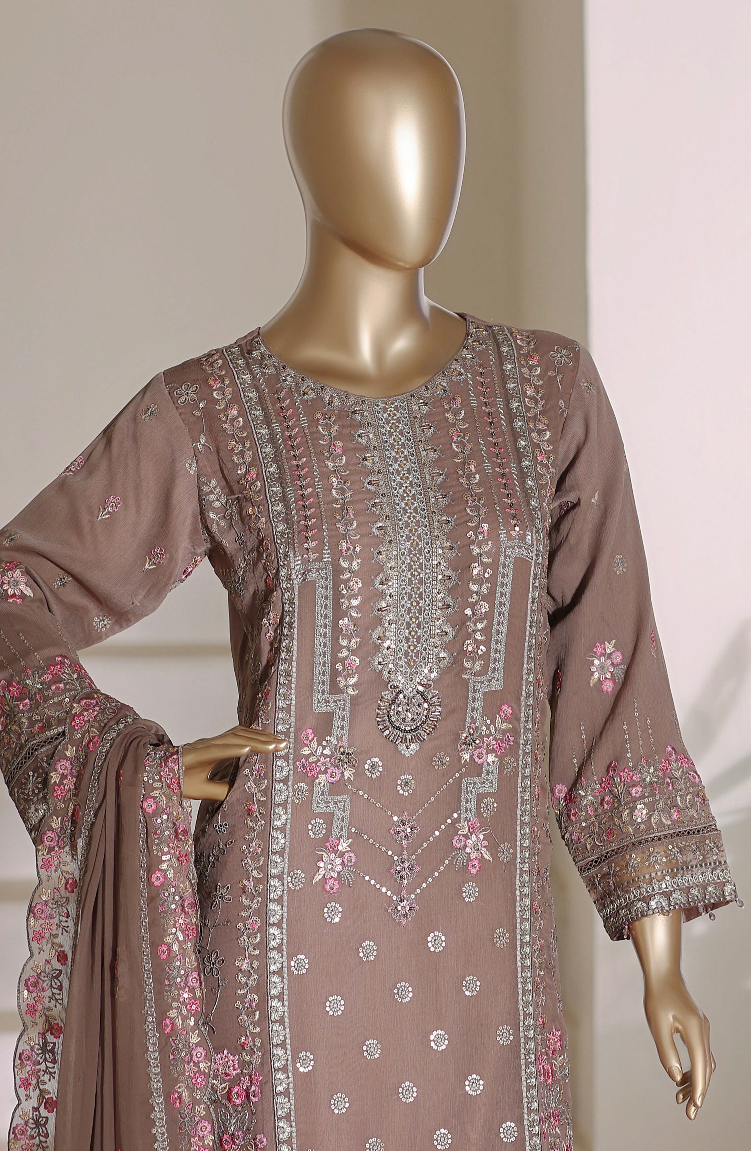 Luxury Embroidered Chiffon Stitched 3 Piece Suit