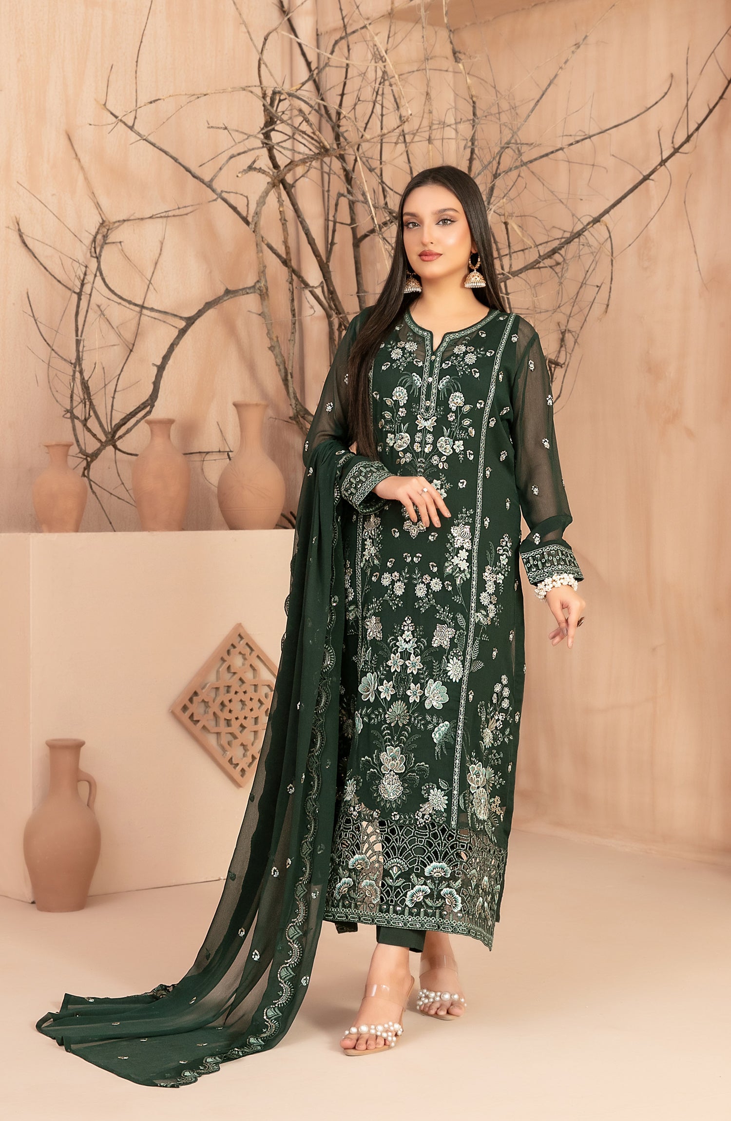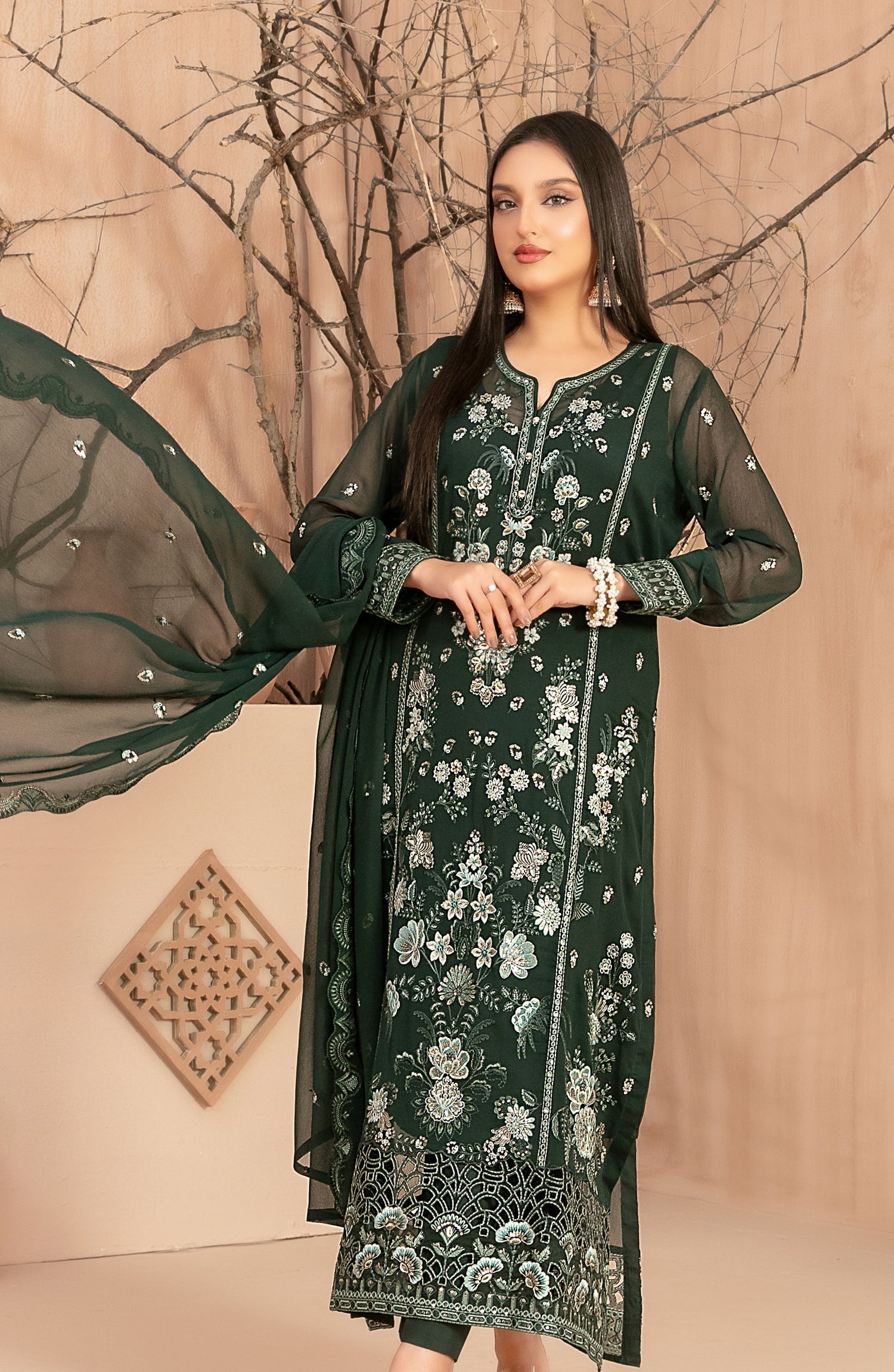 Semi-Stitched Fancy Embroidered Chiffon Shirt Designs with embellishments