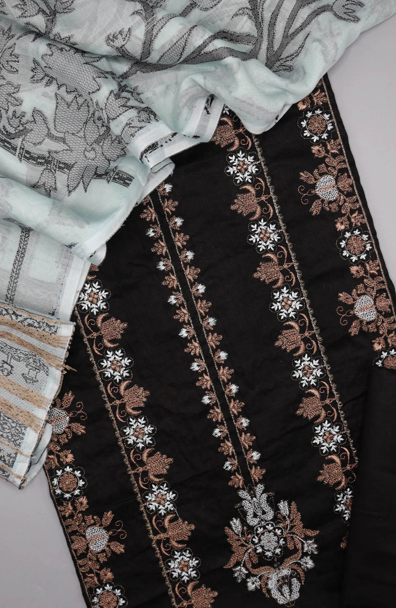 Sadabahar Signature Embroidered Khaddar Stitched 3 Piece Suit - Design-03 - SBD25SNA - Blue - Winter Collection
