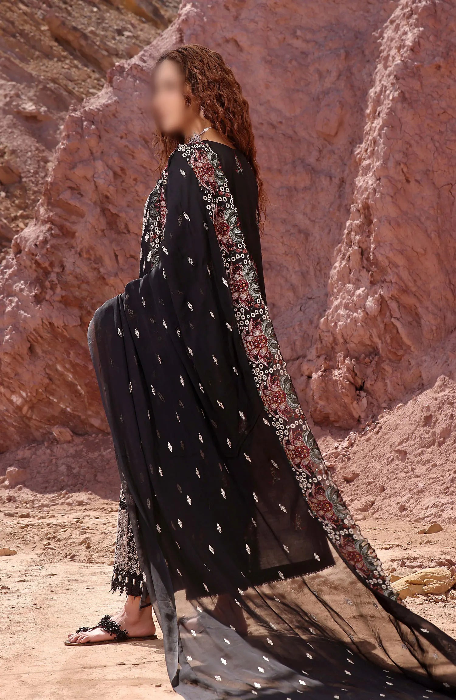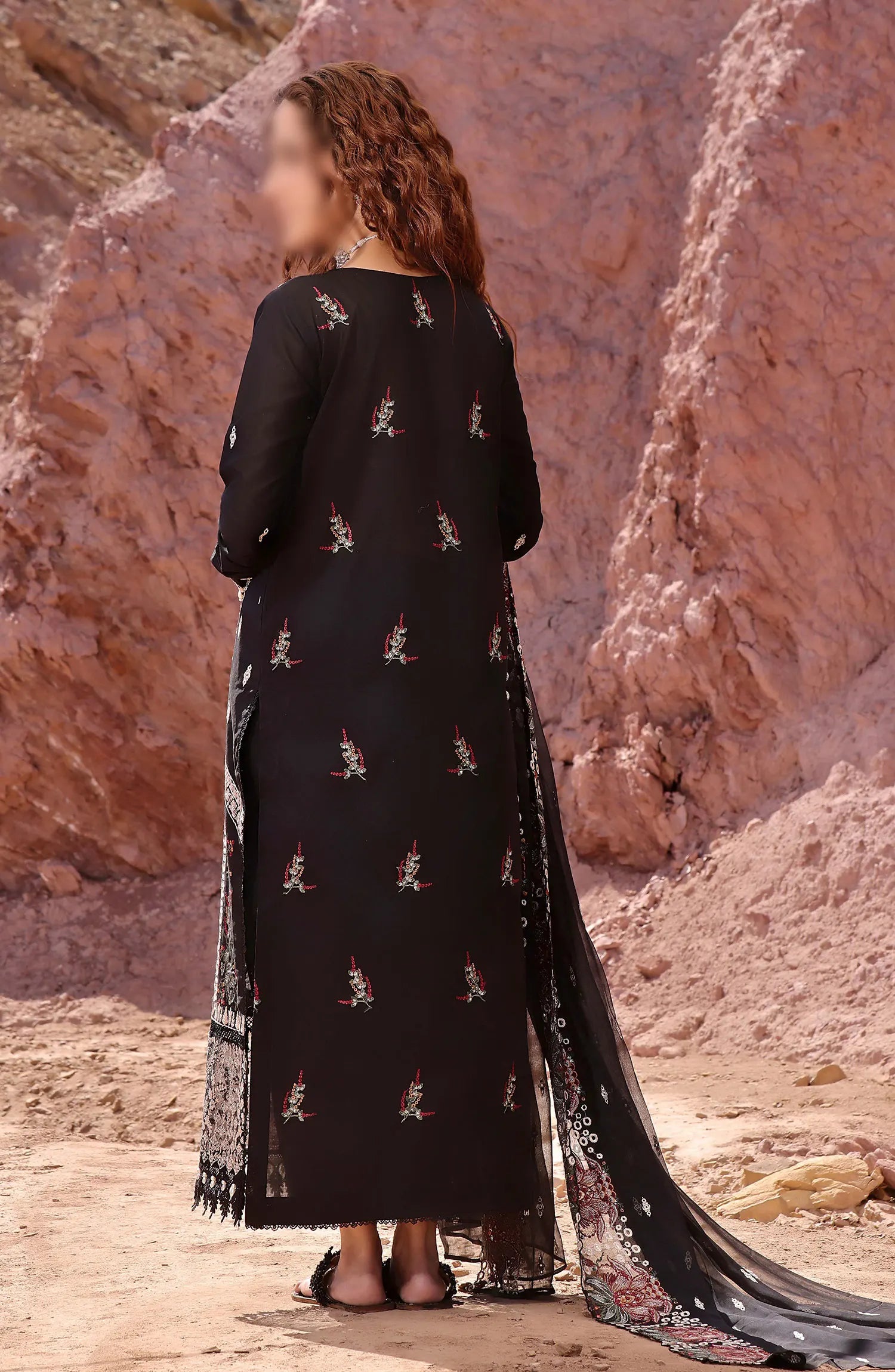 The standard style comes as a long-sleeved kameez with dupatta and trouser/shawlar.