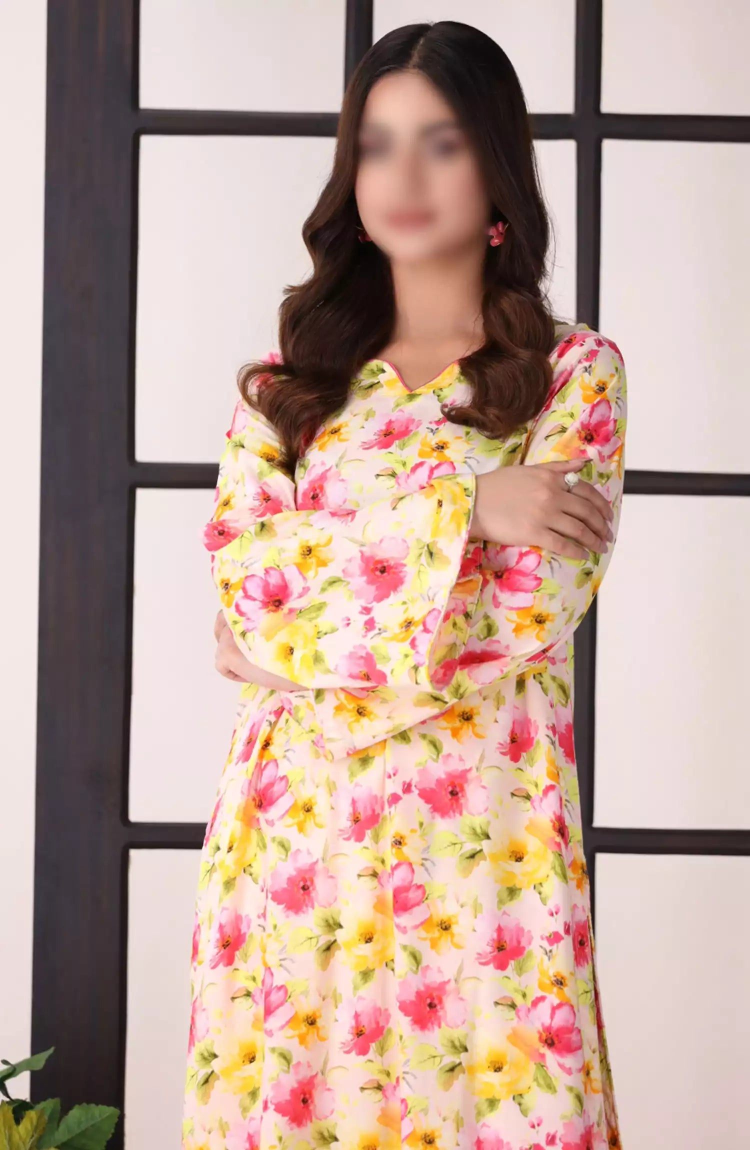 After Glow Digital Printed 2 Pc Linen Collection By Meerak has been styled in the image for photography and illustrative purposes.