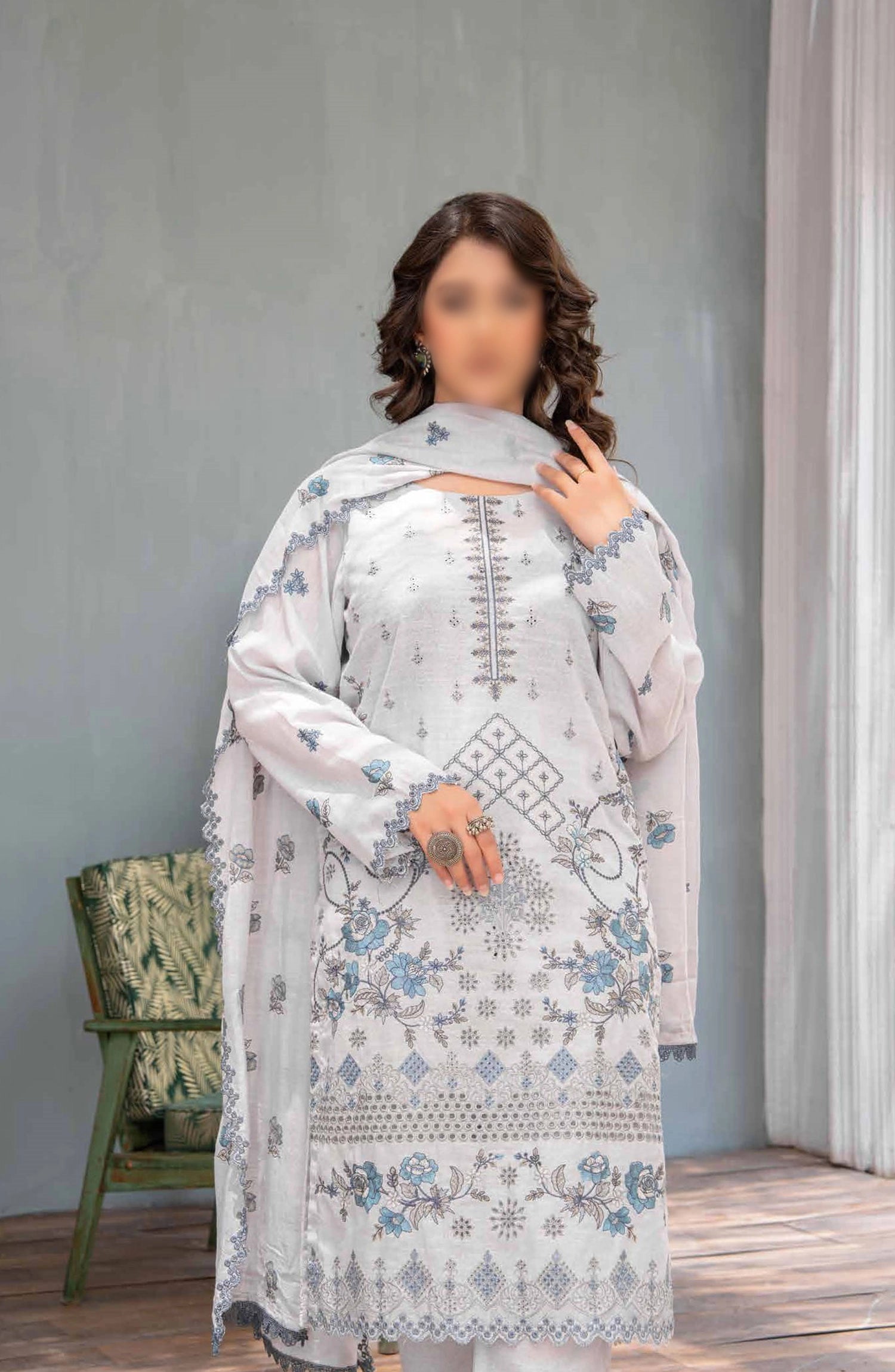 Mohar by Amna Khadija Embroidered Shamooz Silk Stitched 2 Piece Suit - AKMS-04 - AM25HARR - Blue - Winter Collection