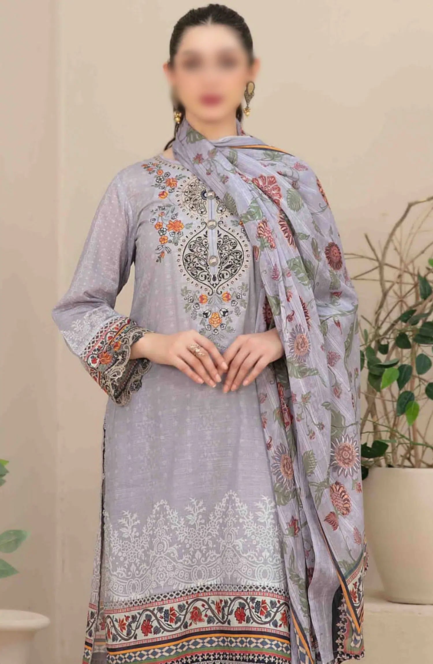 Ahava - Stitched Embroidered Digital Lawn Collection has been styled in the image for photography and illustrative purposes.