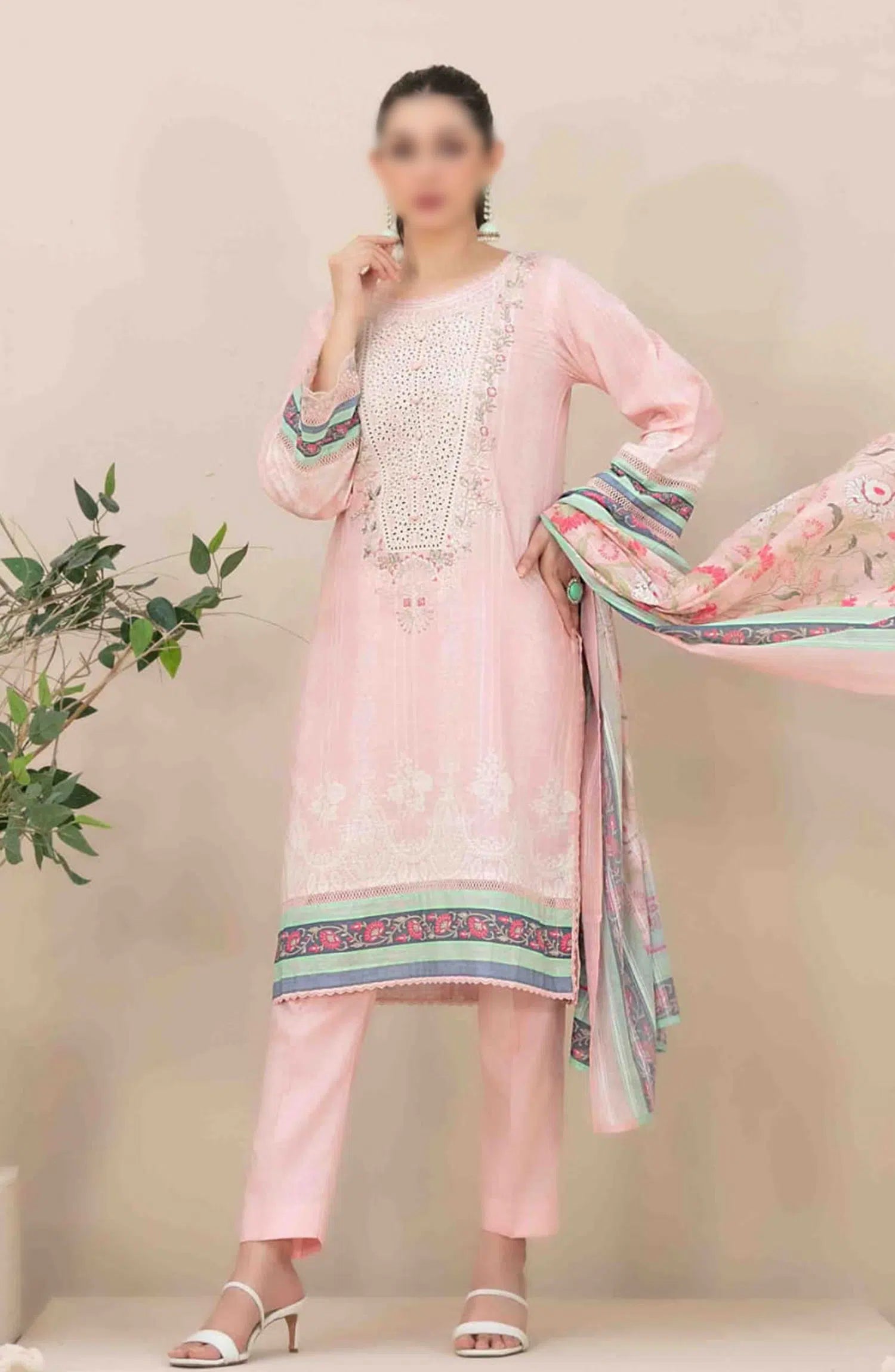 Ahava - Stitched Embroidered Digital Lawn Collection has been styled in the image for photography and illustrative purposes.