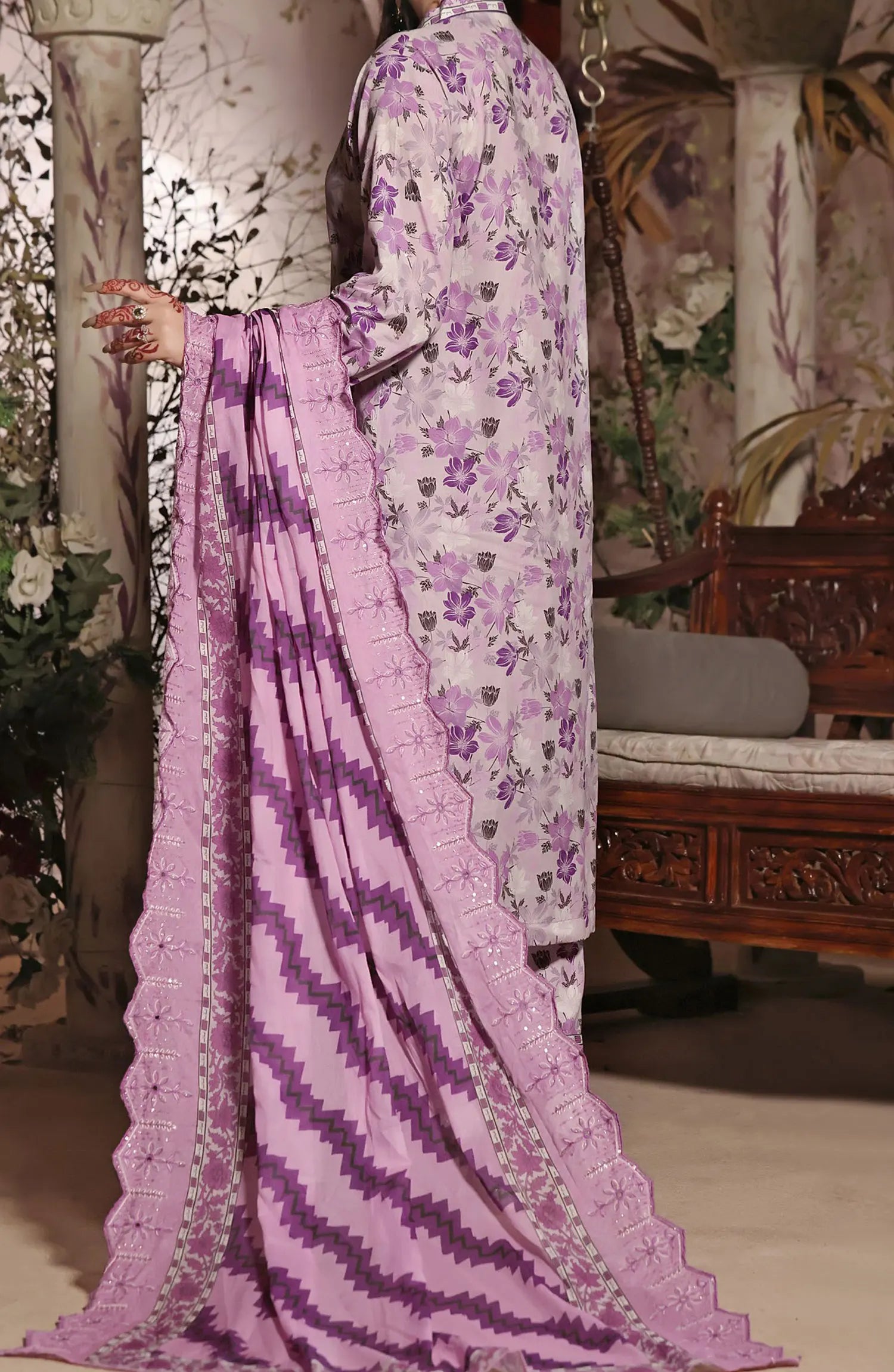 Afrozeh Day Break Embroidered Lawn Unstitched 3 Piece Suit - FWU-0014-3PO-Dove Mist - AF26DB - Purple - Luxury Summer Collection