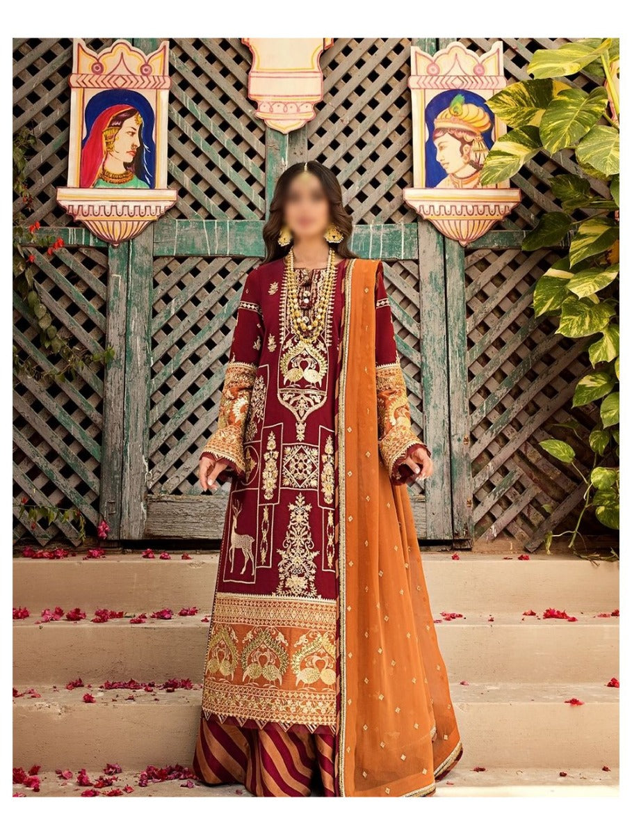 The standard style comes as a long-sleeved kameez with dupatta and trouser/shawlar.