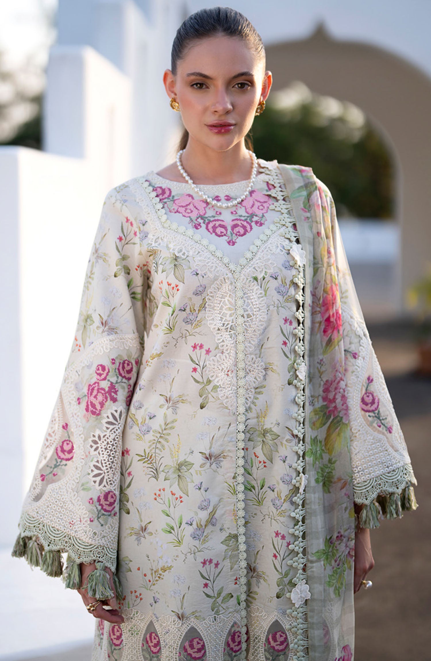 AJR Embroidered Lawn Unstitched 3 Piece Suit - AJR-PK-05 Alessia - AJR25PK - Off White - Summer Collection