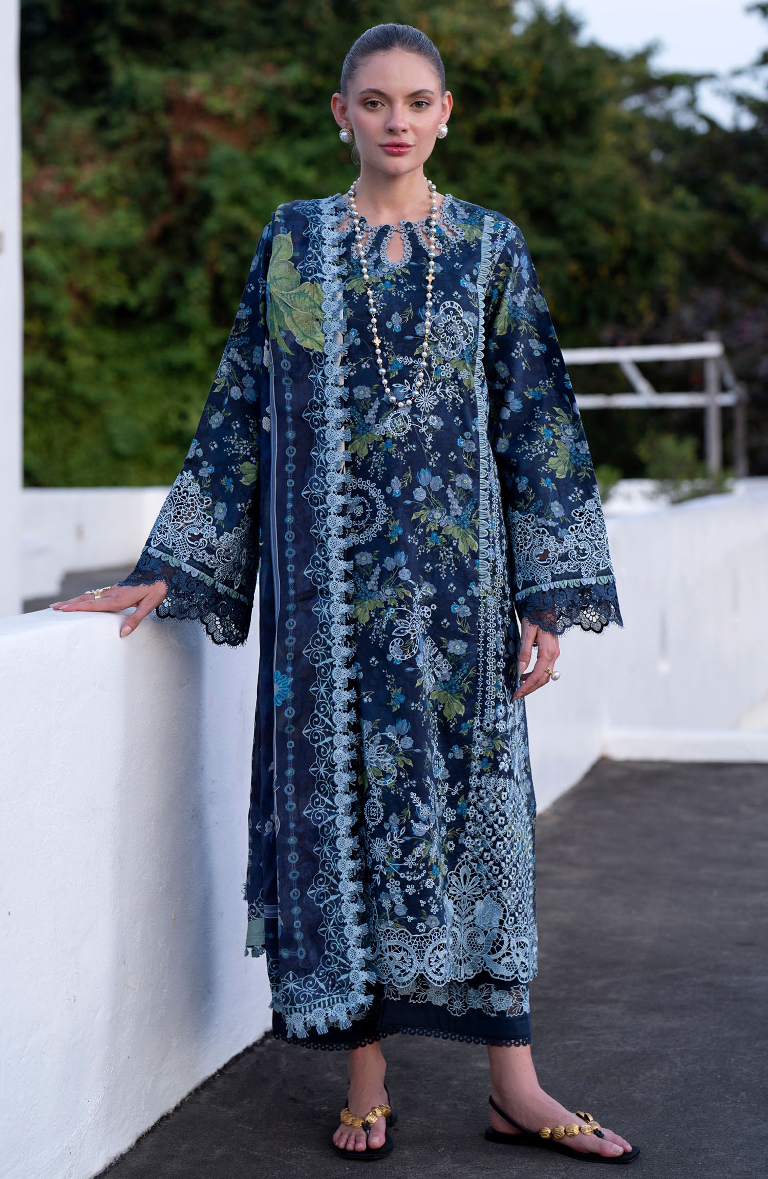 The standard style comes as a long-sleeved kameez with dupatta and trouser/shawlar.