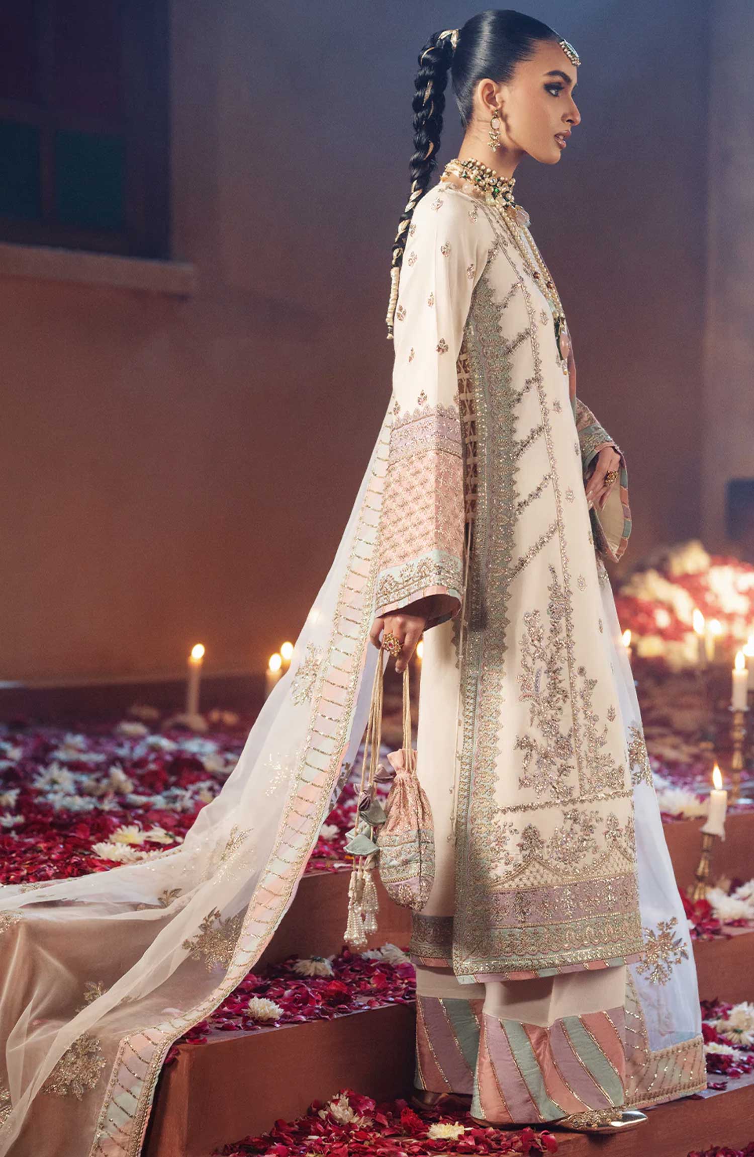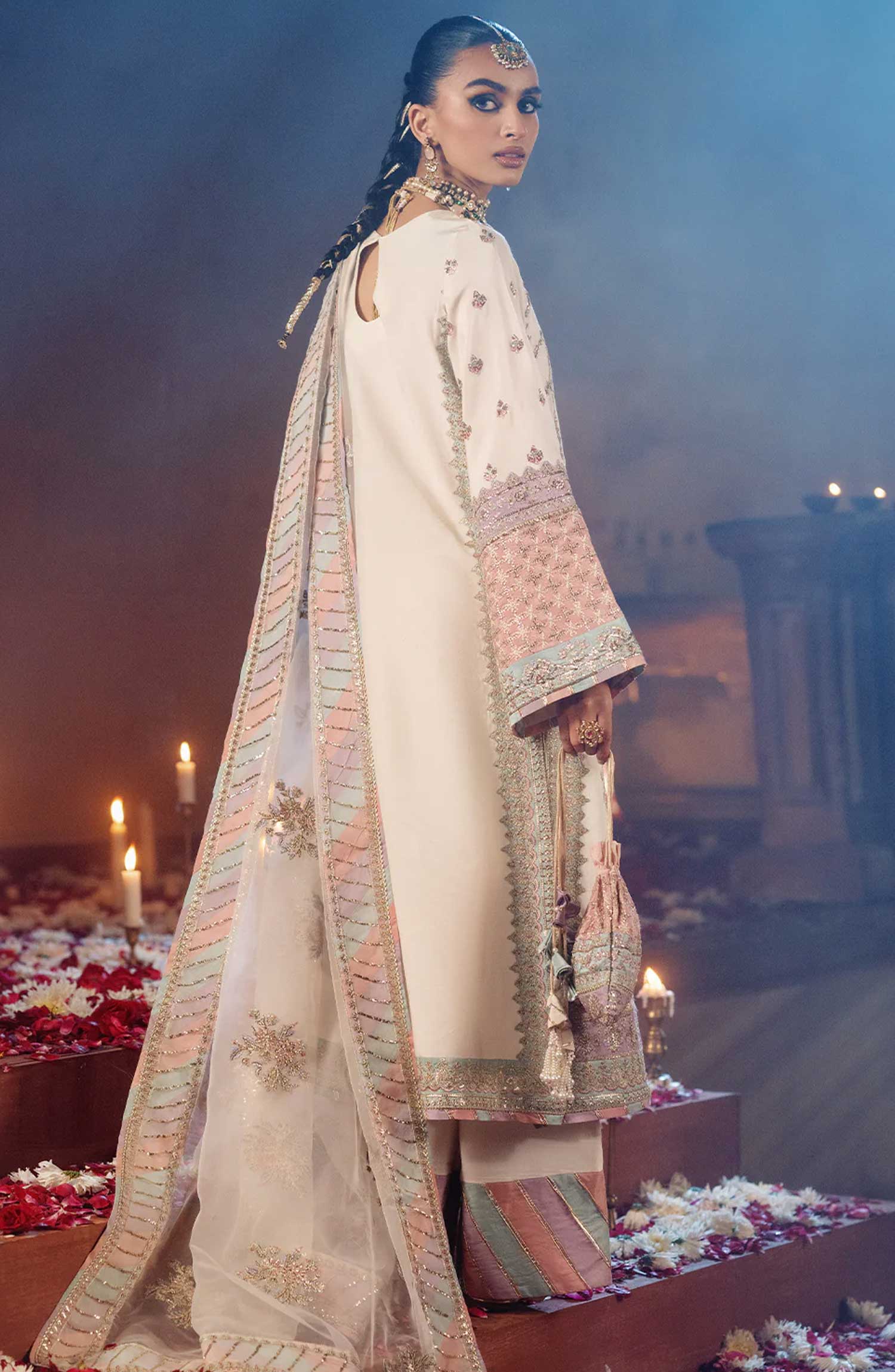 Resham Embroidered And Sequins Embellished Front Right And Left Panels On Offwhite Color