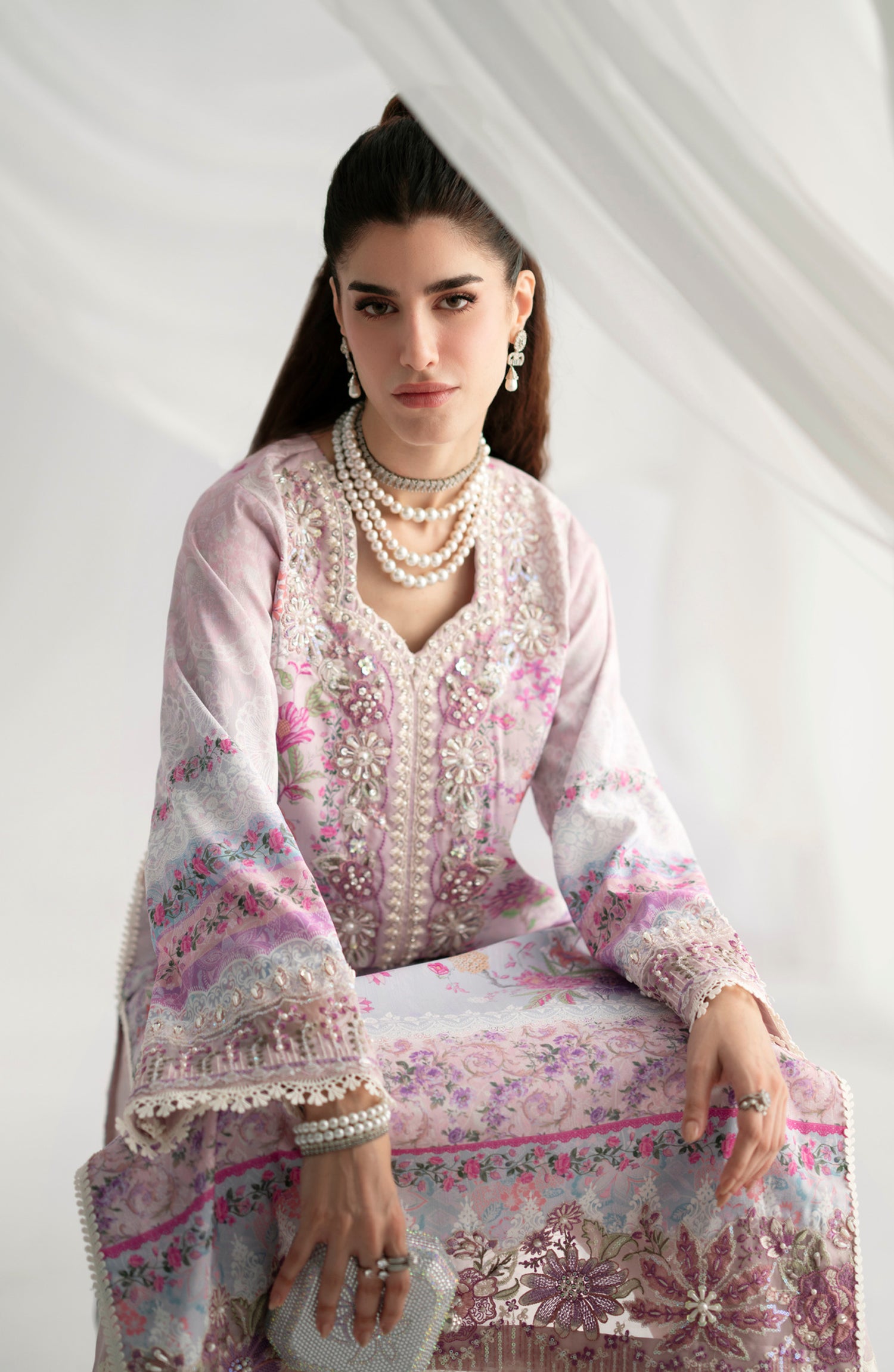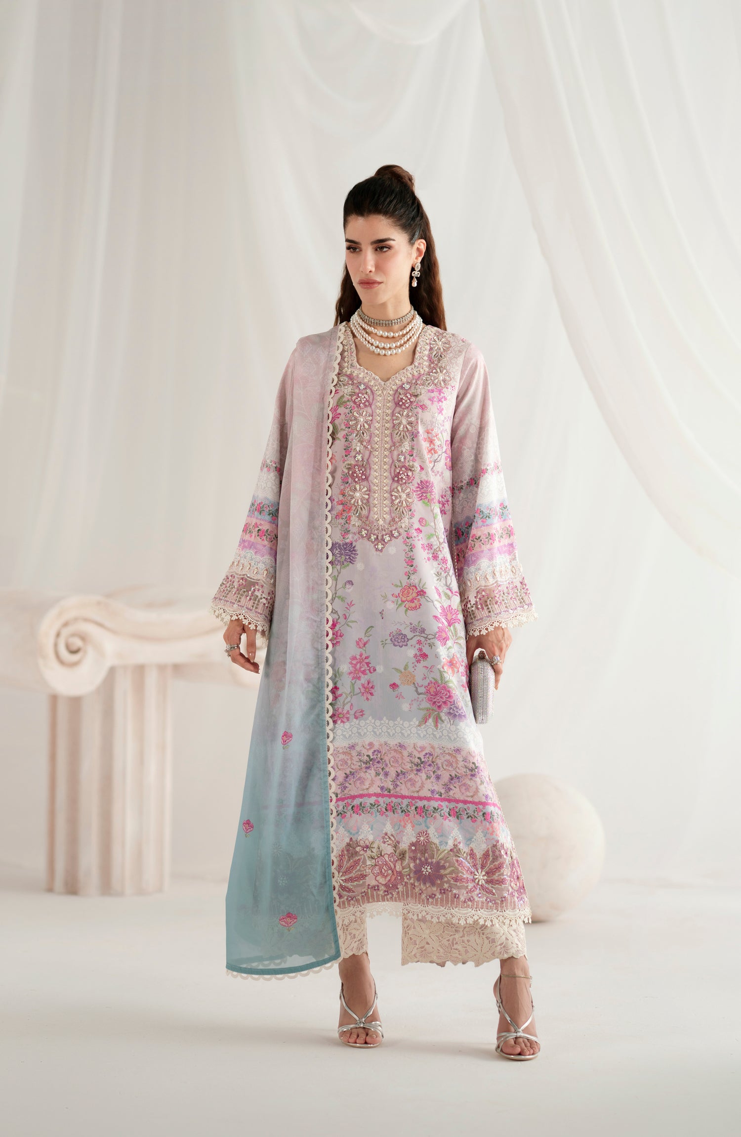 Embroidered and Embellished neckline.