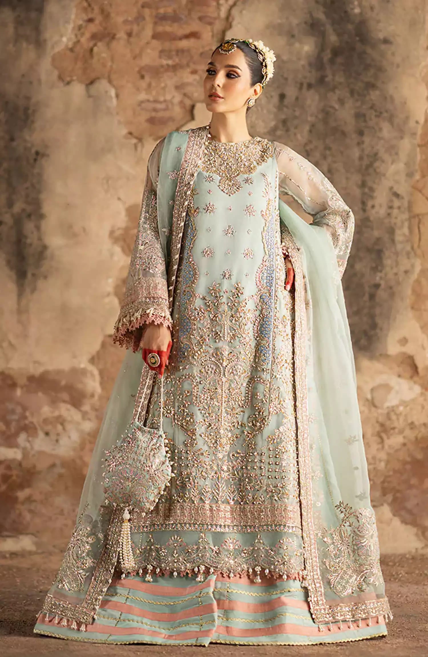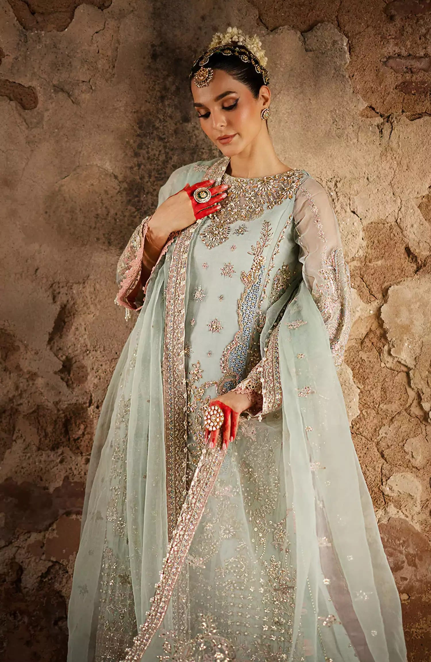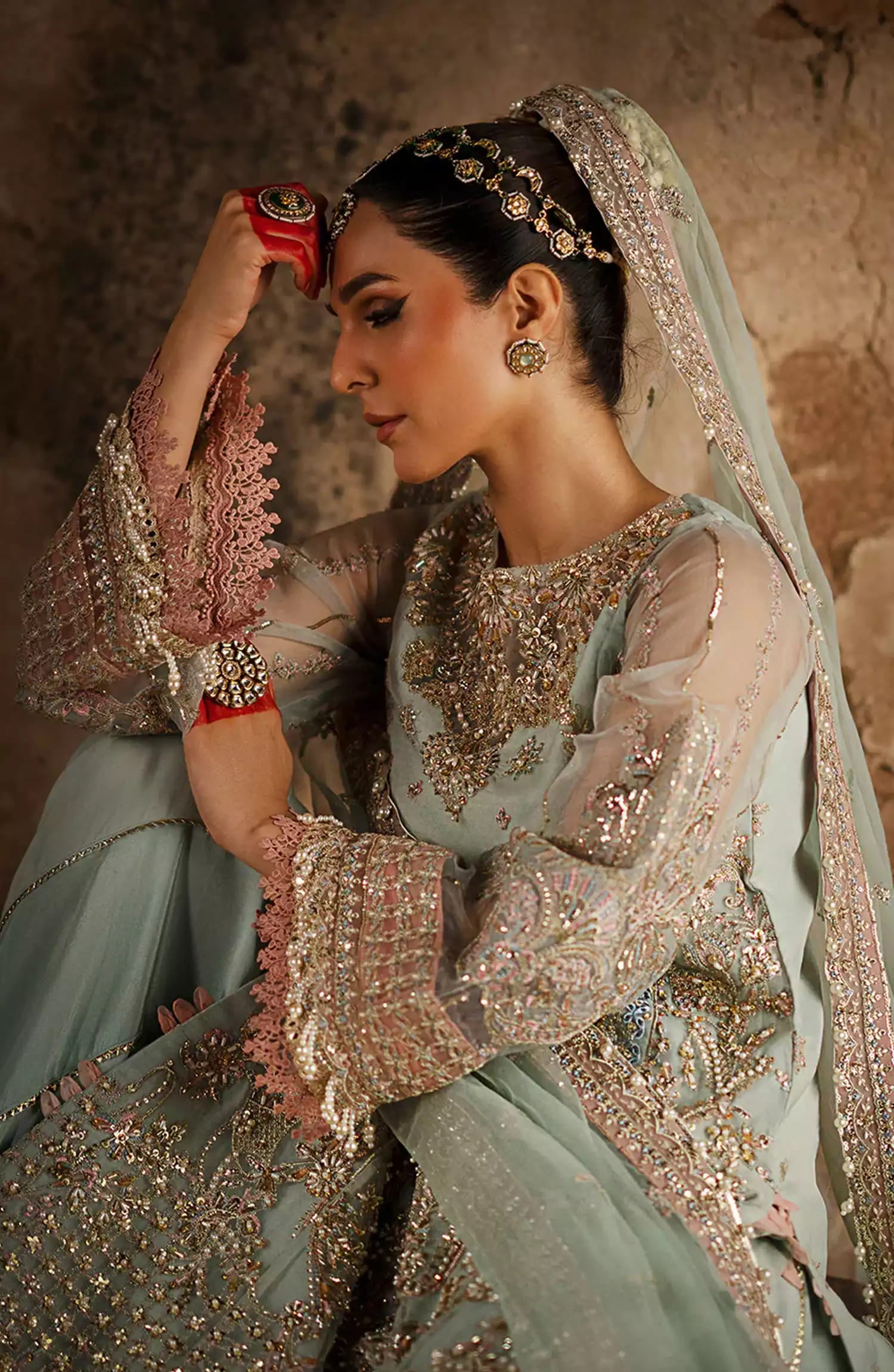 Nirvana exudes sheer opulence with its masterfully crafted resham embroidery and hand embellishments that grace every element of this timeless piece.