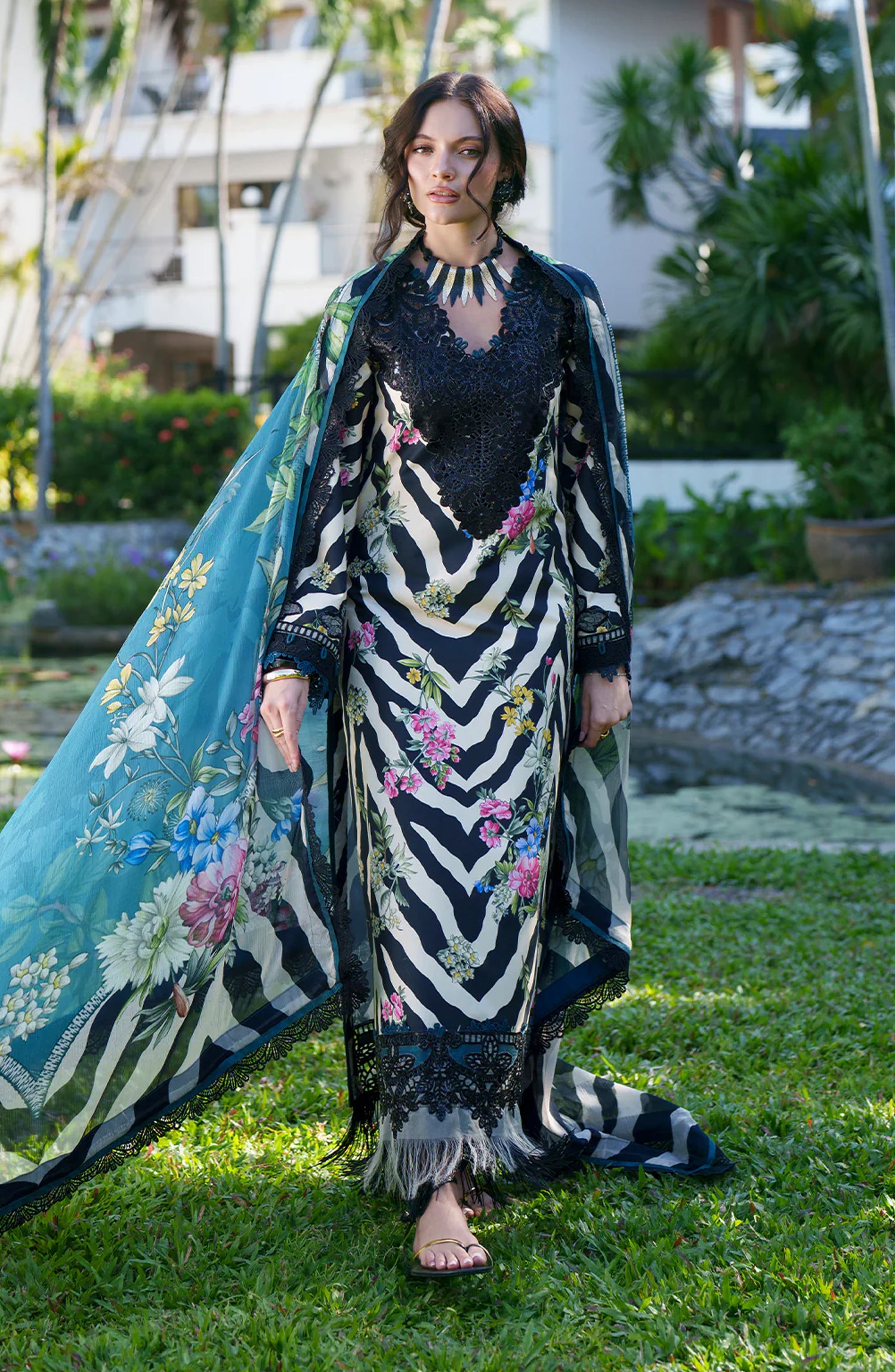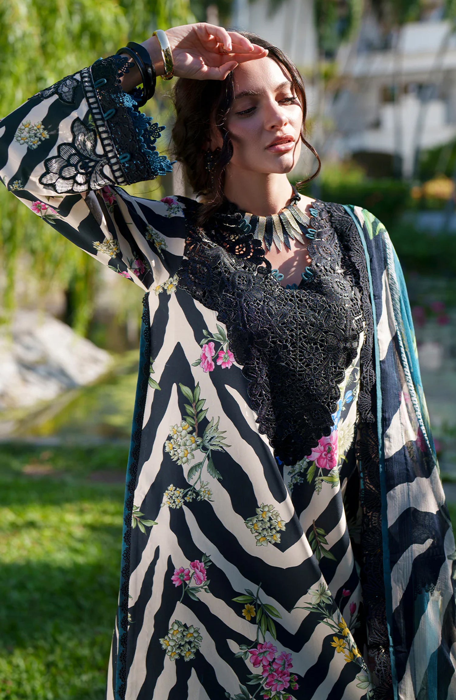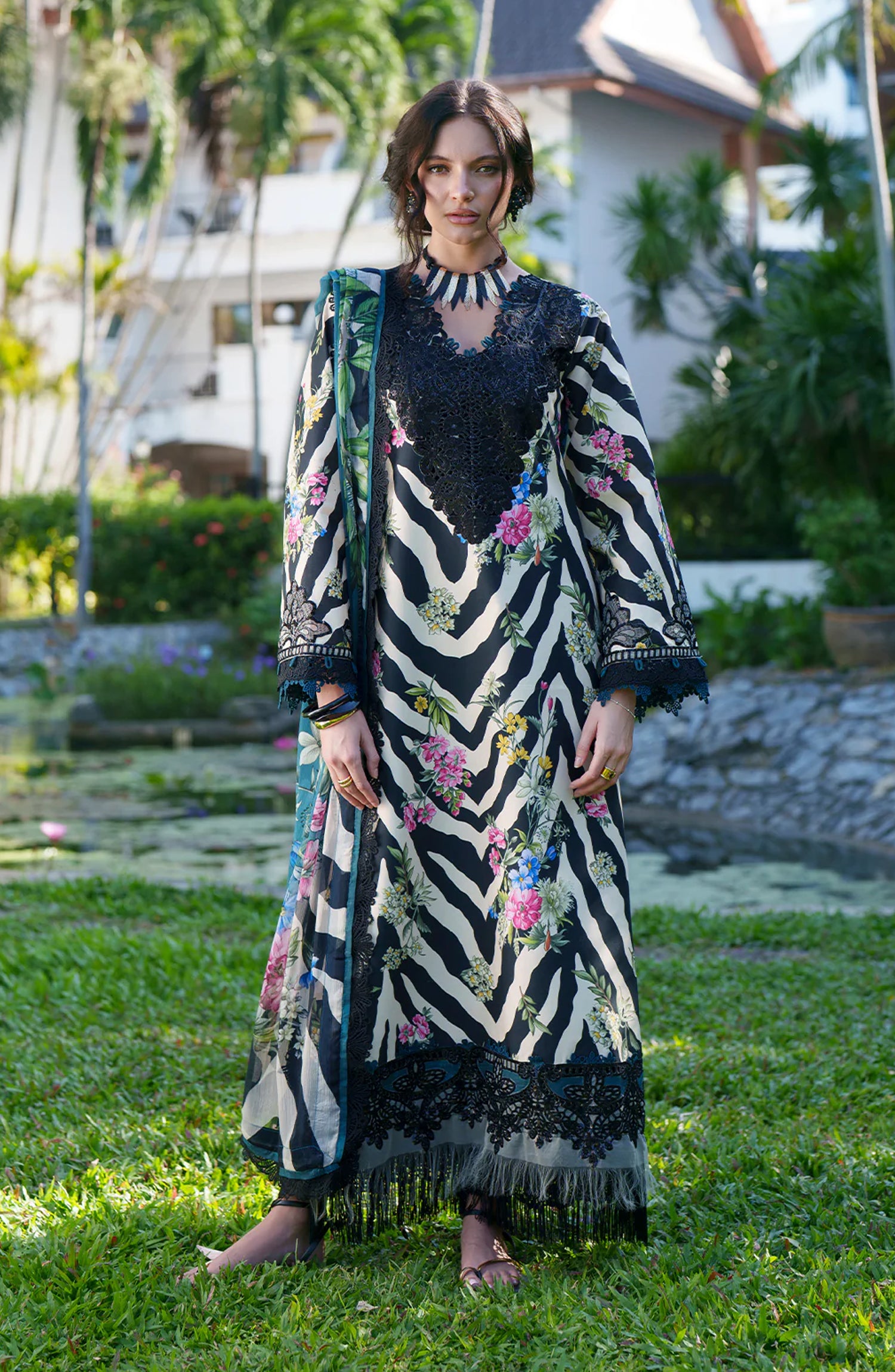 AJR Printed and Embroidered Chikankari Lawn Unstitched 3 Piece Suit - Iris - AJR26CH - Black - Summer Collection