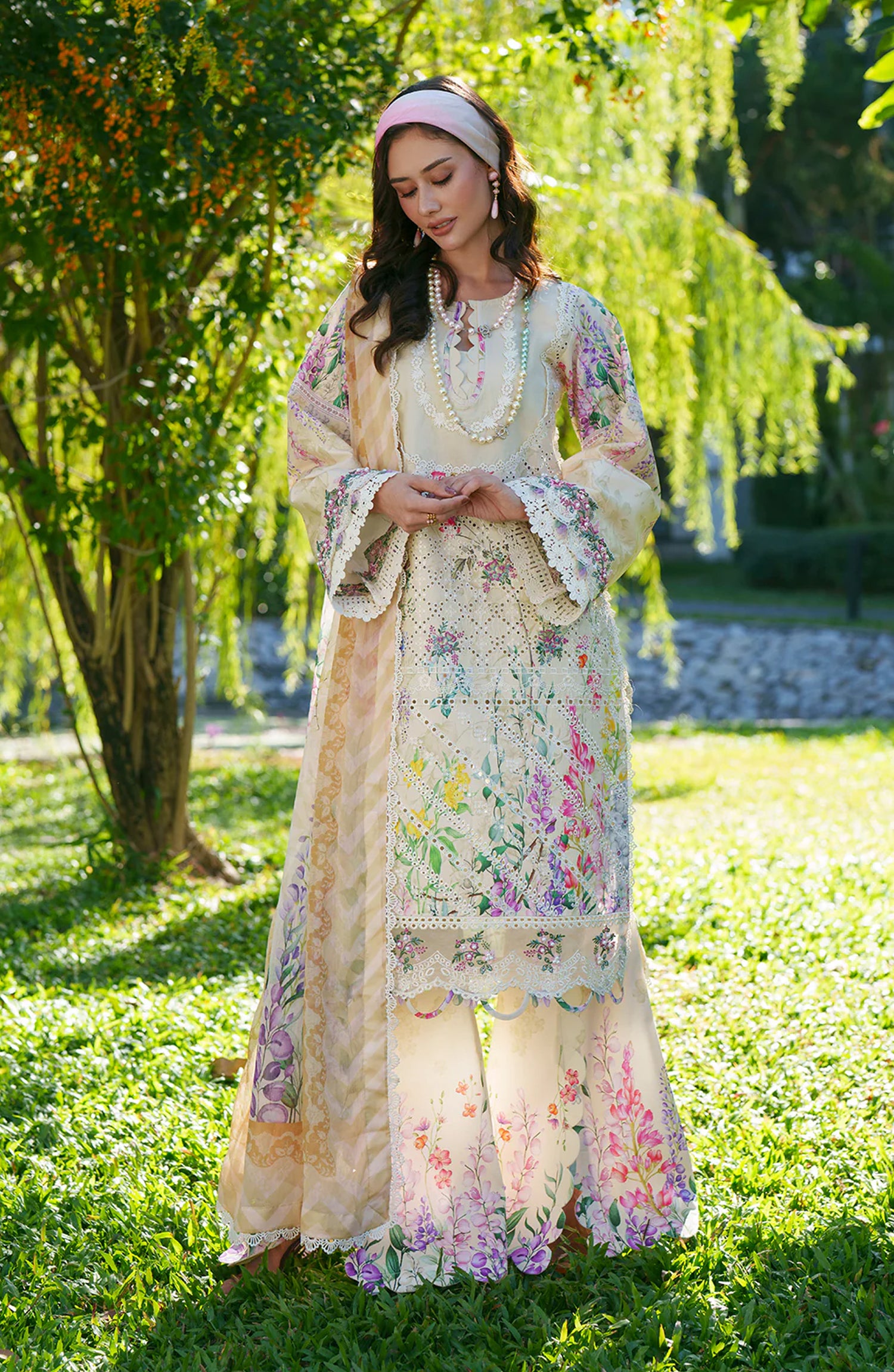 AJR Printed and Embroidered Chikankari Lawn Unstitched 3 Piece Suit - Lila - AJR26CH - Beige - Summer Collection