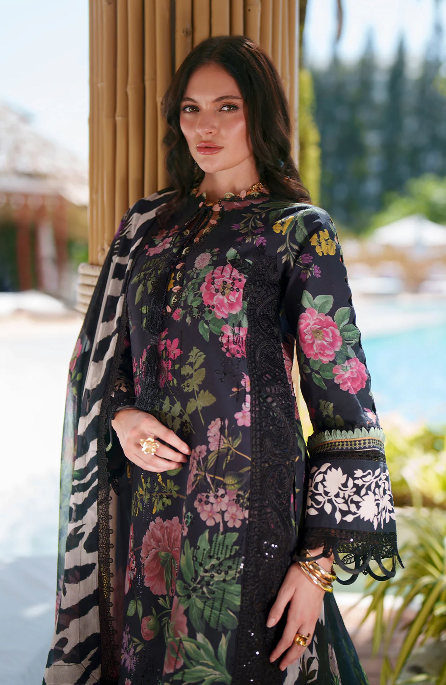 AJR Printed and Embroidered Chikankari Lawn Unstitched 3 Piece Suit - Vera - AJR26CH - Black - Summer Collection