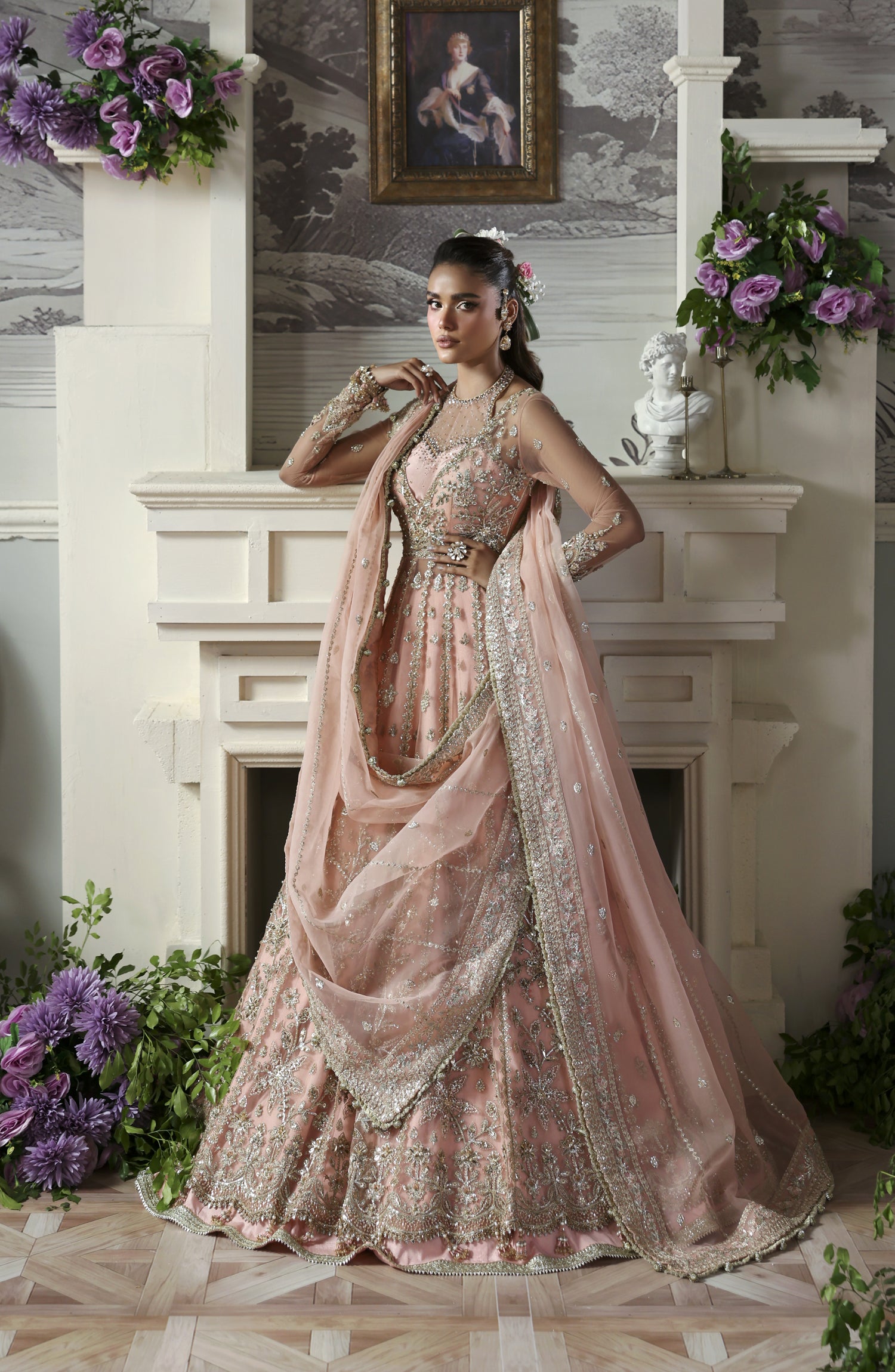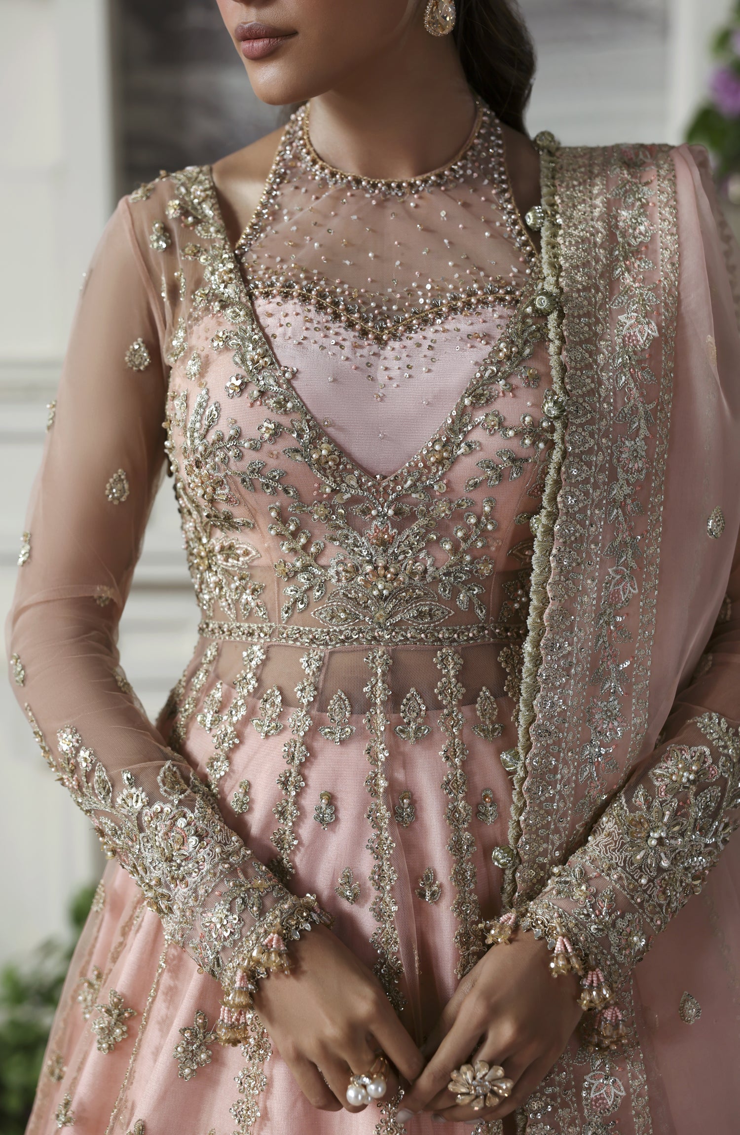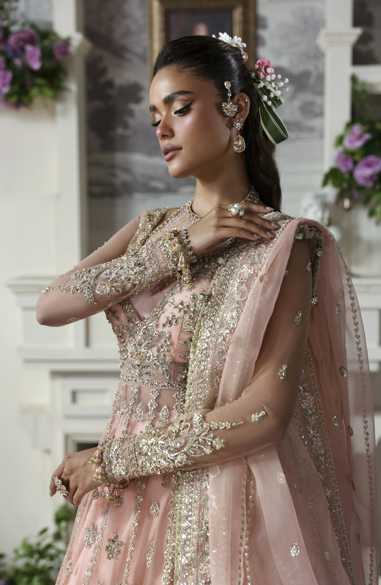 Akbar Aslam Deewani Luxury Embroidered Net Unstitched 3 Piece Suit - U-1570 - Sanoura - AKA25DW - Pink - Formal Collection