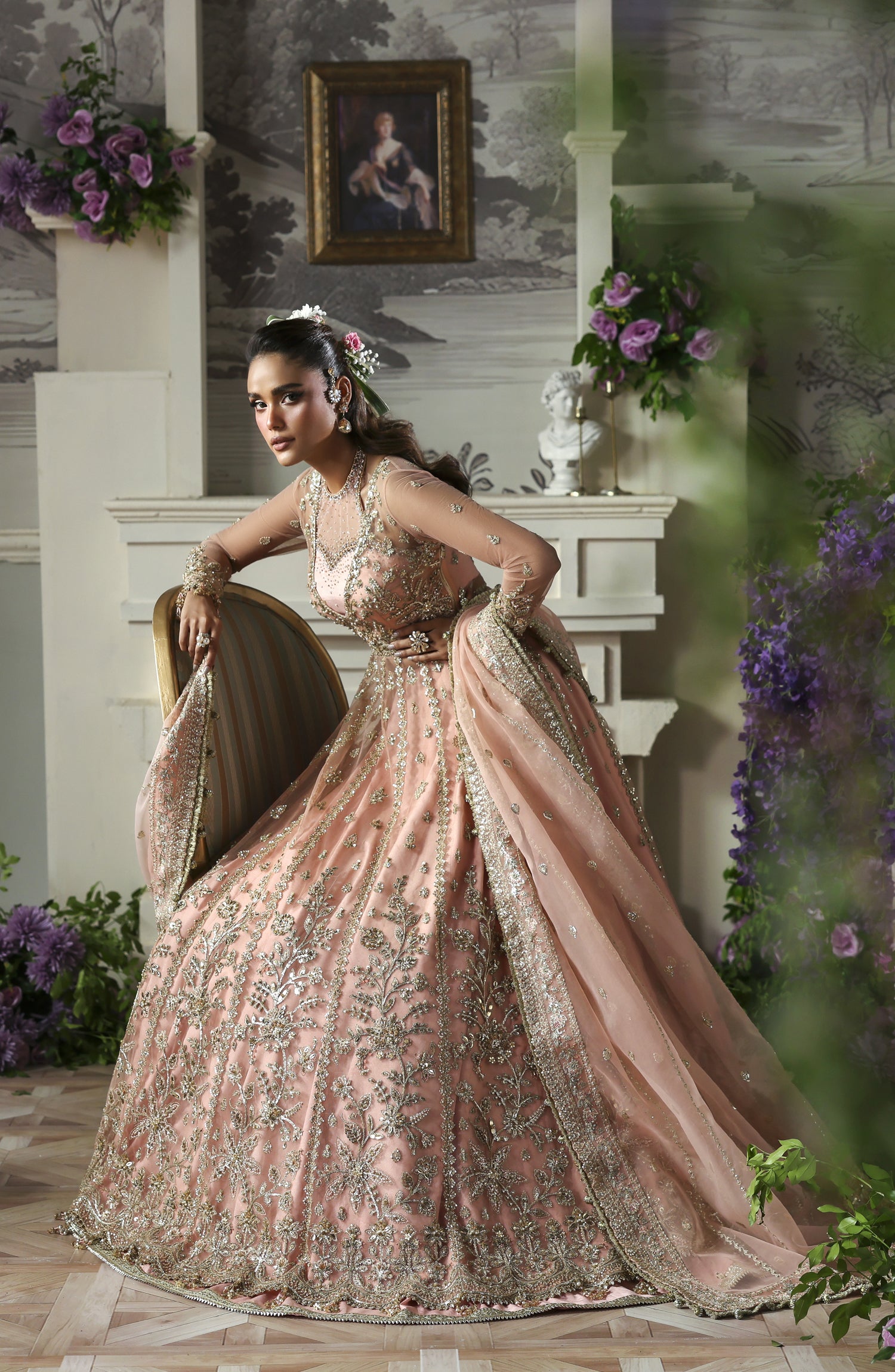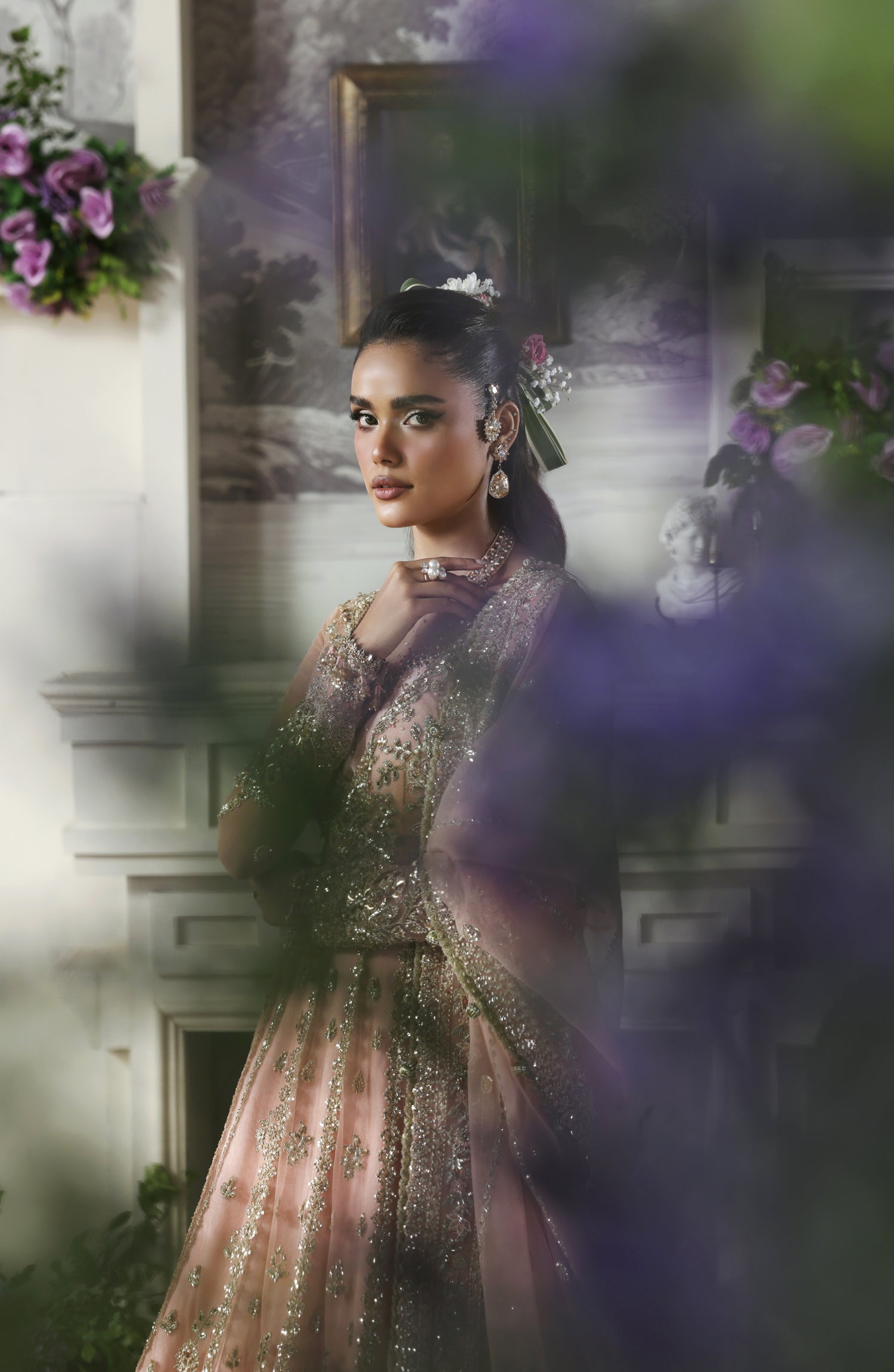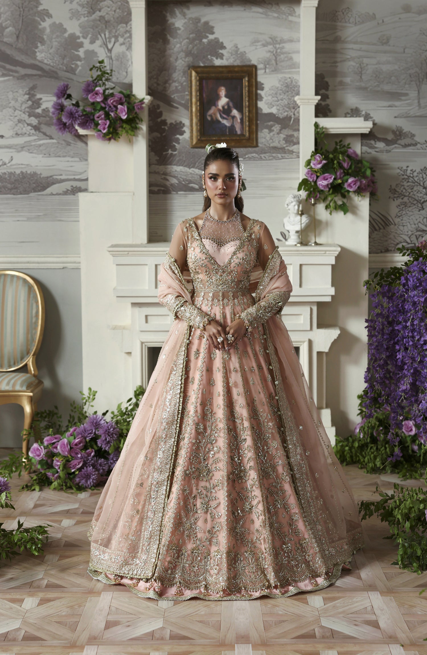 Akbar Aslam Deewani Luxury Embroidered Net Unstitched 3 Piece Suit - U-1570 - Sanoura - AKA25DW - Pink - Formal Collection
