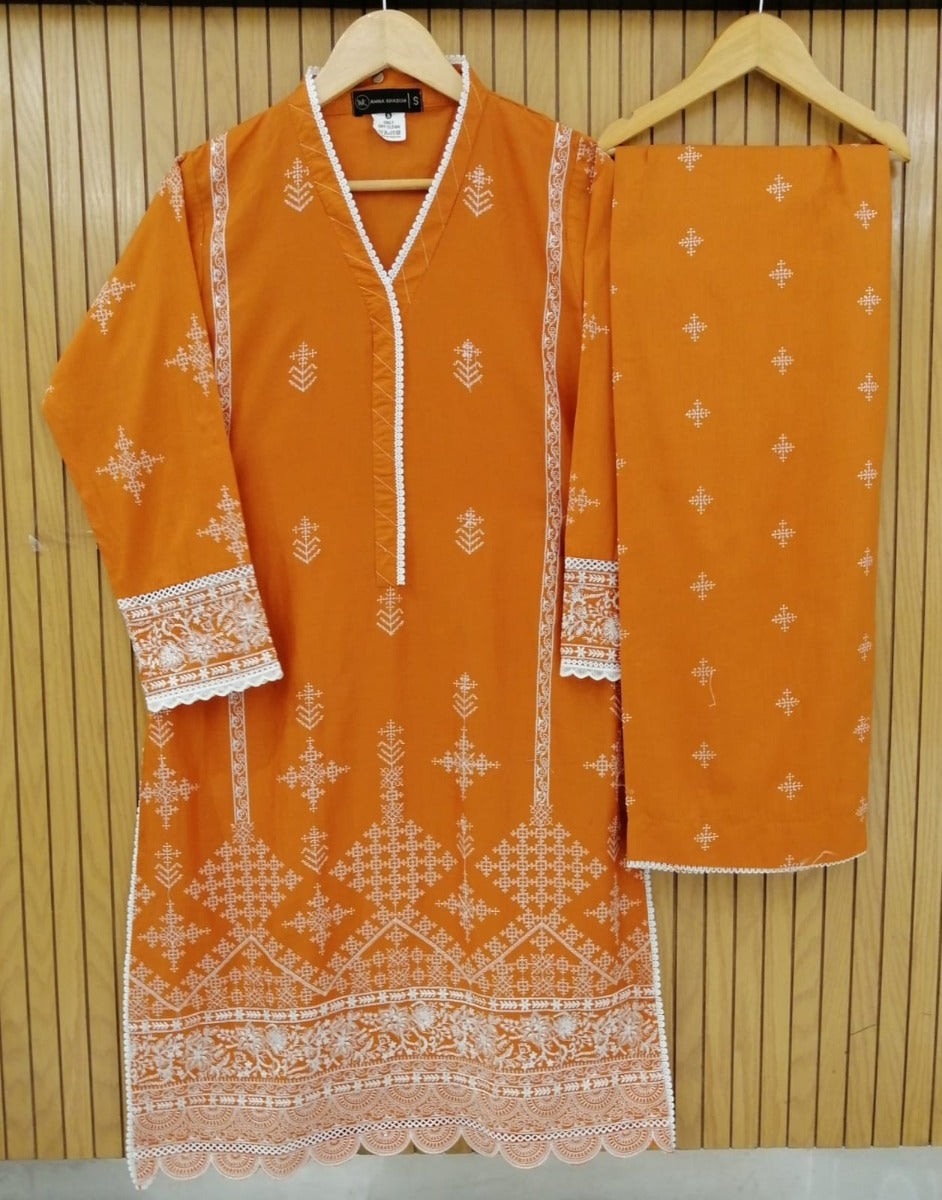 The standard style comes as a long-sleeved kameez and trouser/shalwar.