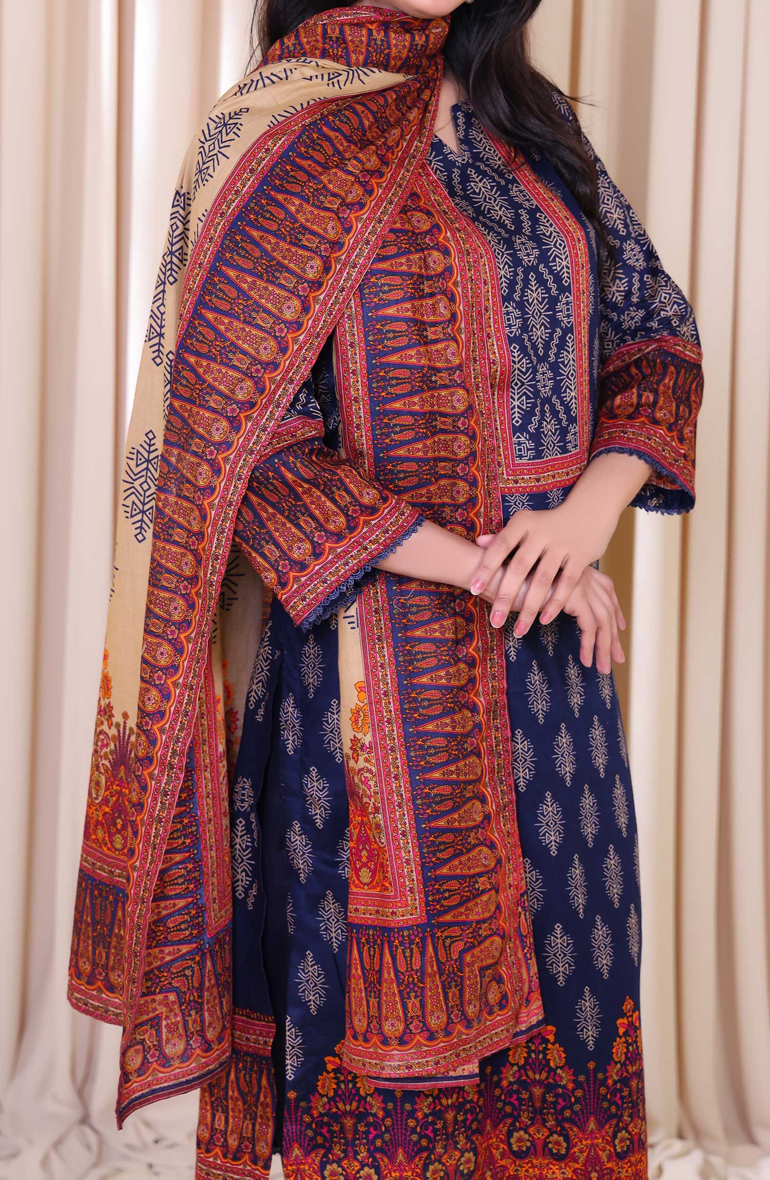 Al Karim Printed Cotton Lawn Unstitched 3 Piece Suit - DL 185 - ALK25DCL - Blue - Summer Collection