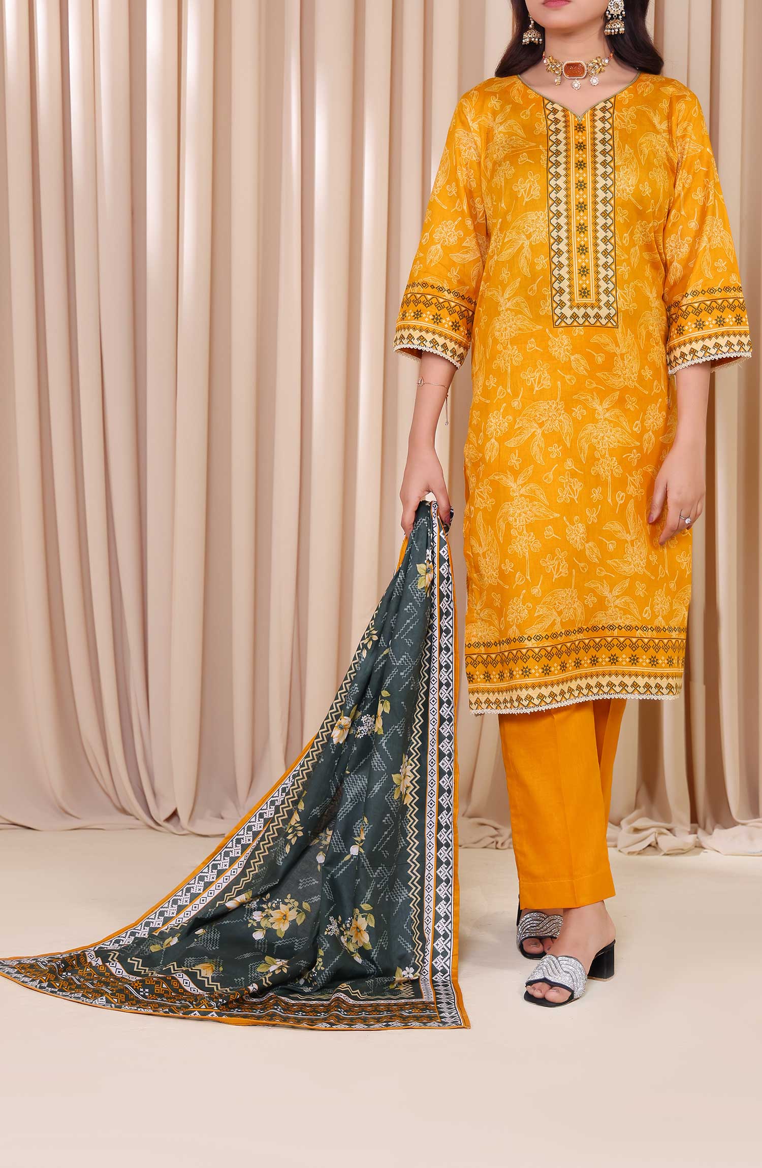 Designer Cotton Lawn 3 Pcs Printed Collection 2024 has been styled in the image for photography and illustrative purposes.