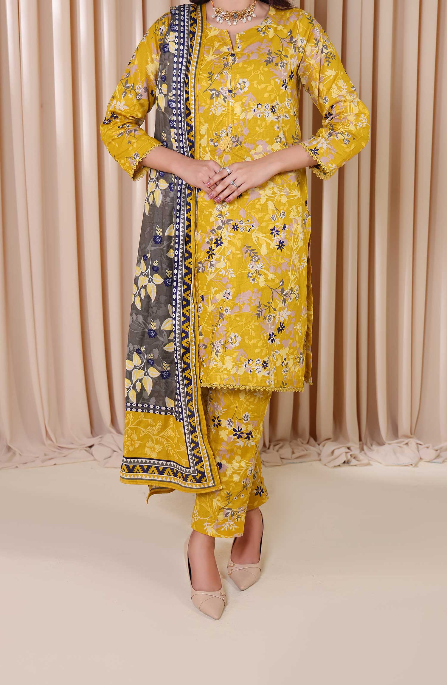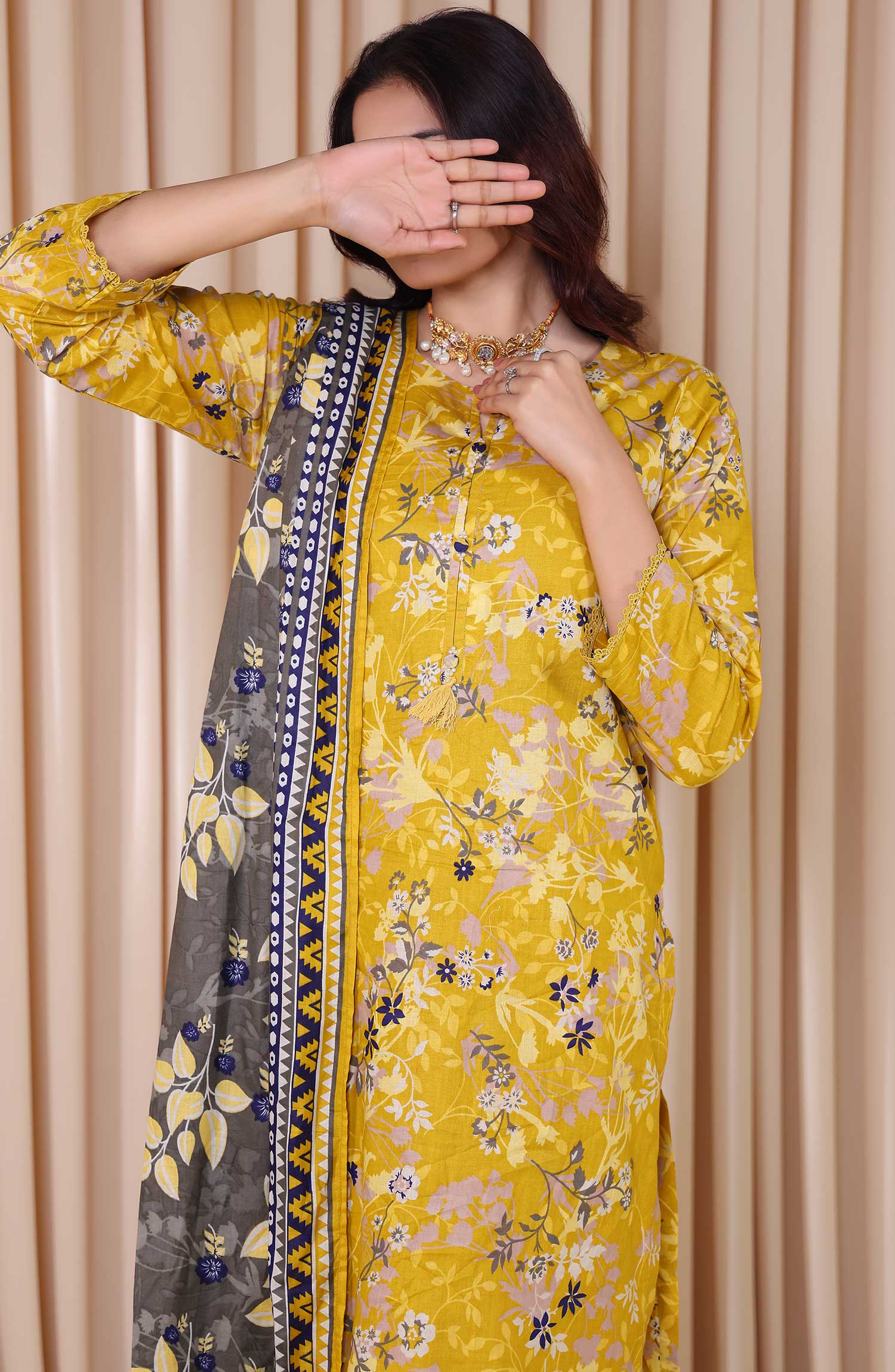 Home Al Karim Printed Cotton Lawn Unstitched 3 Piece Suit - DL 203 - ALK25DCL - Yellow - Summer Collection