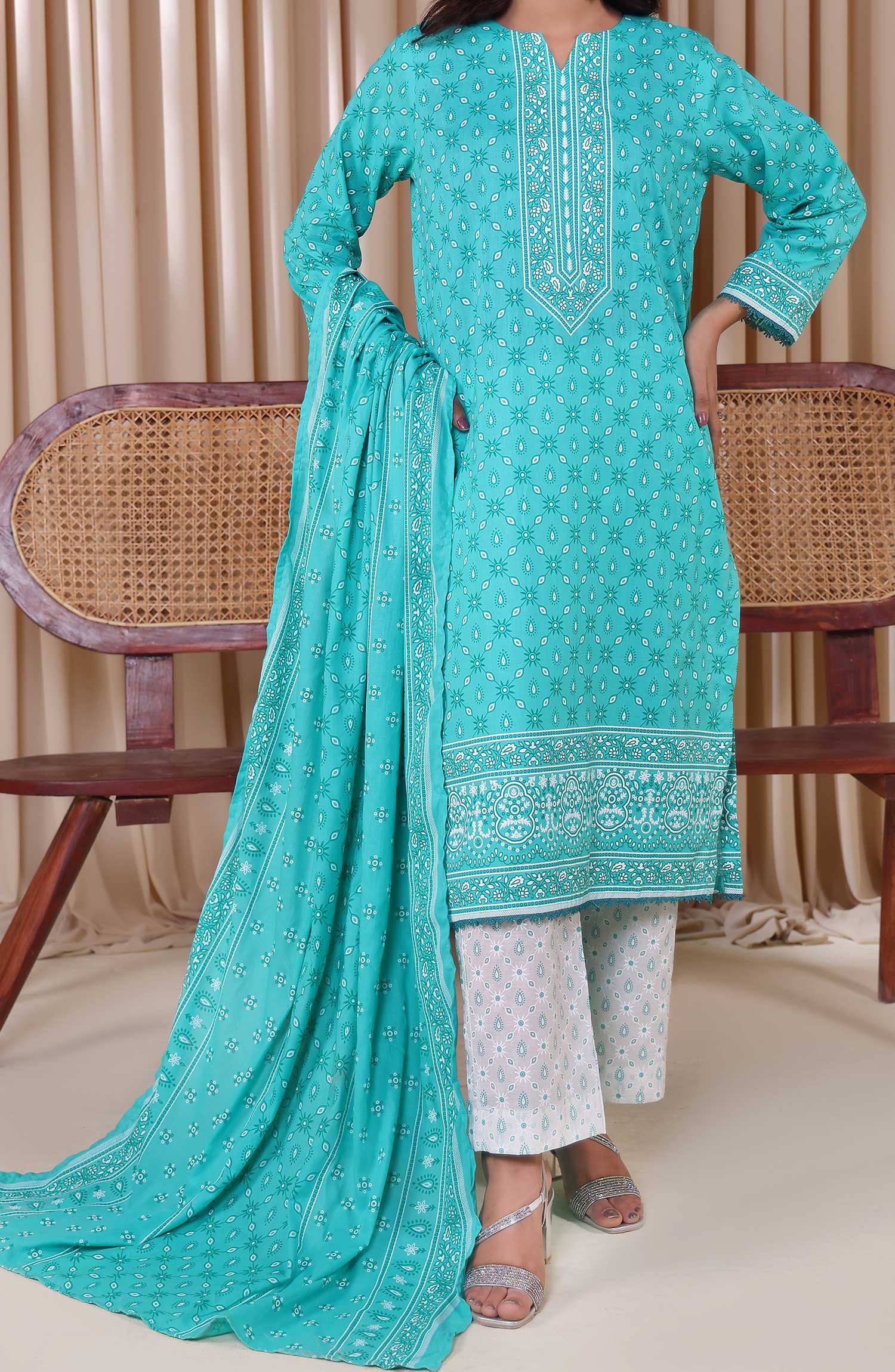 Designer Cotton Lawn 3 Pcs Printed Collection 2024 has been styled in the image for photography and illustrative purposes.