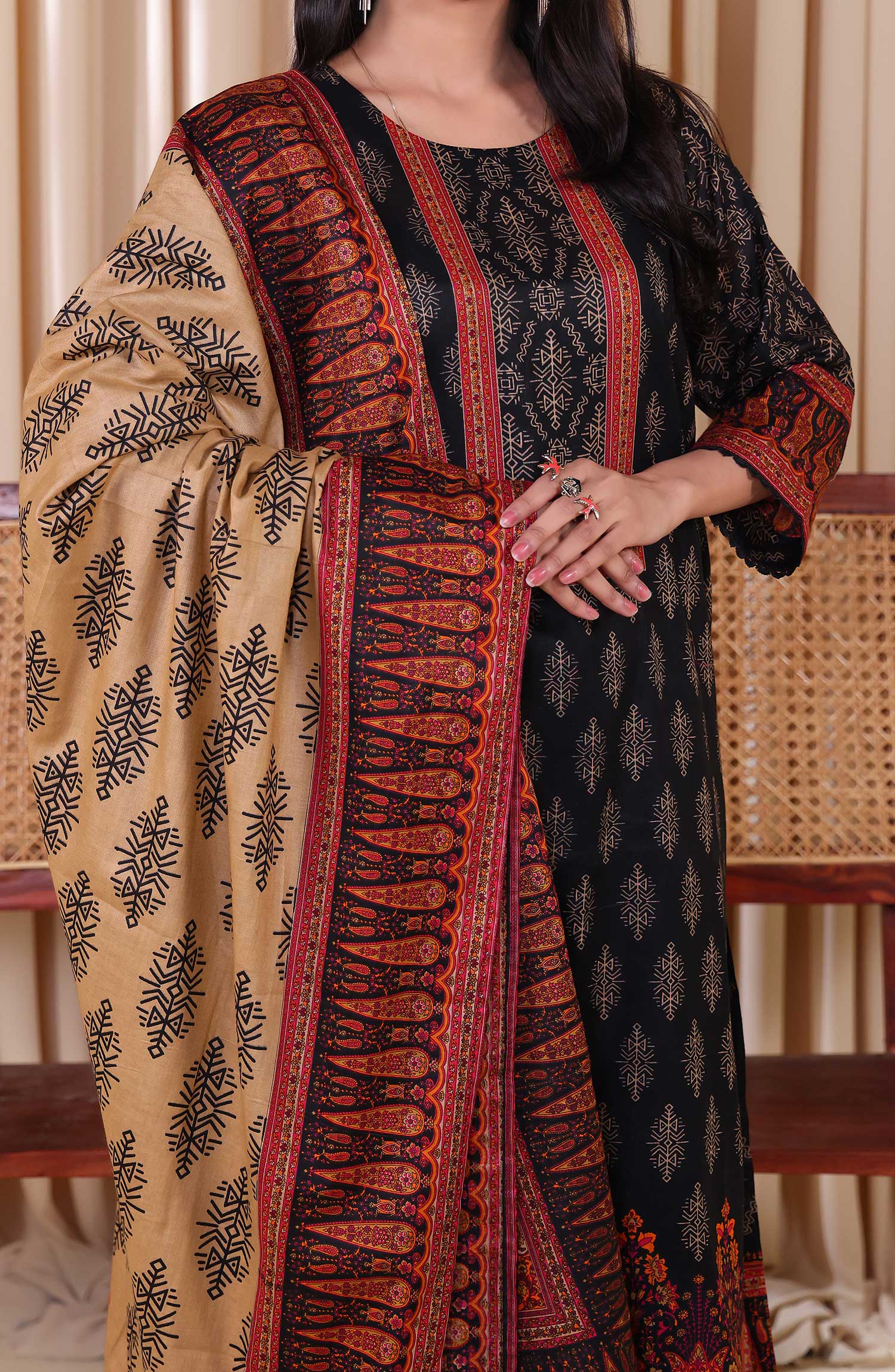 Al Karim Printed Cotton Lawn Unstitched 3 Piece Suit - DL 210 - ALK25DCL - Black - Summer Collection