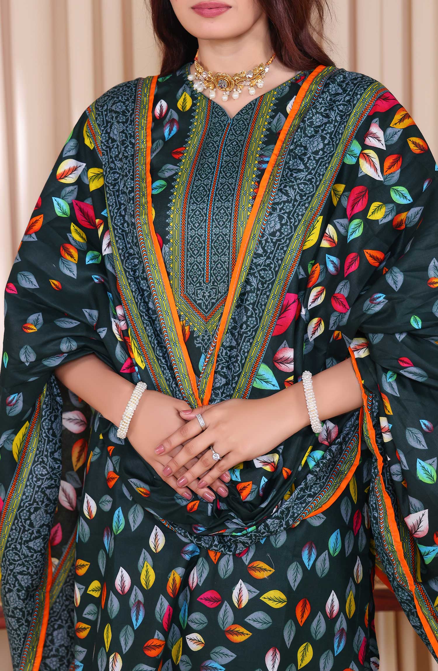 Rua by Casual Lite Embroidered Premium Linen Stitched 3 Piece Suit - D-04 Emerald Verse - CL25RU - Green - Winter Collection
