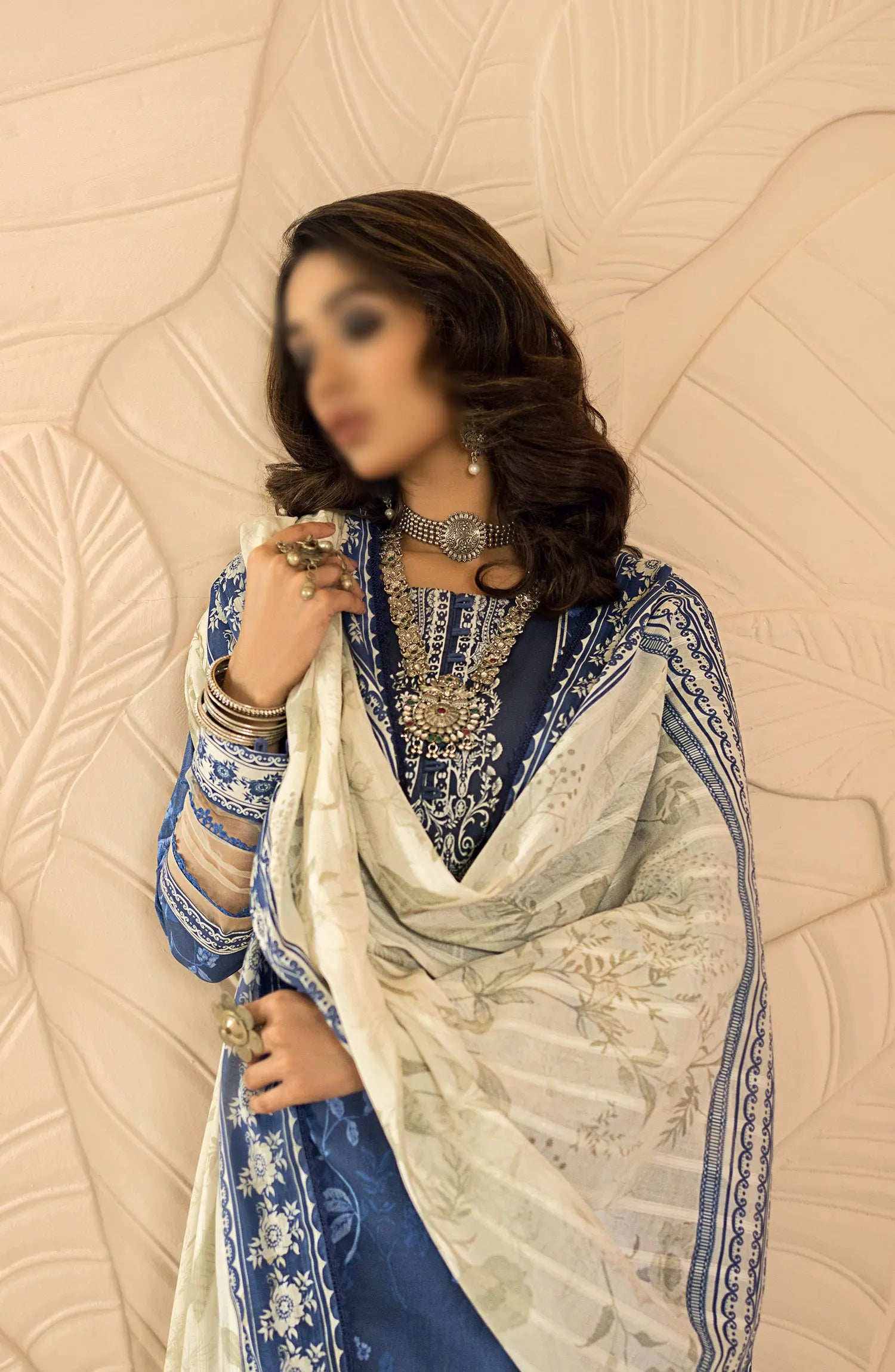 Divani by Afrozeh The Silk Edit Embroidered Raw Silk Unstitched 3 Piece Suit - AS-25-06 MAHVEEN - AF25DV - Blue - Luxury Festive Collection