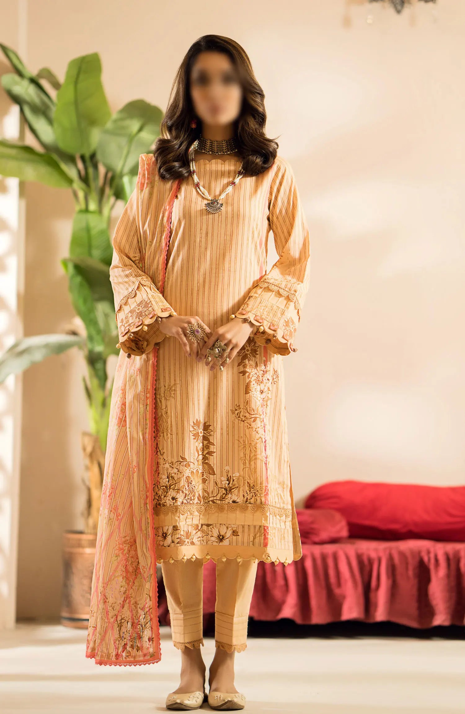 The standard style comes as a long-sleeved kameez with dupatta and trouser/shalwar.