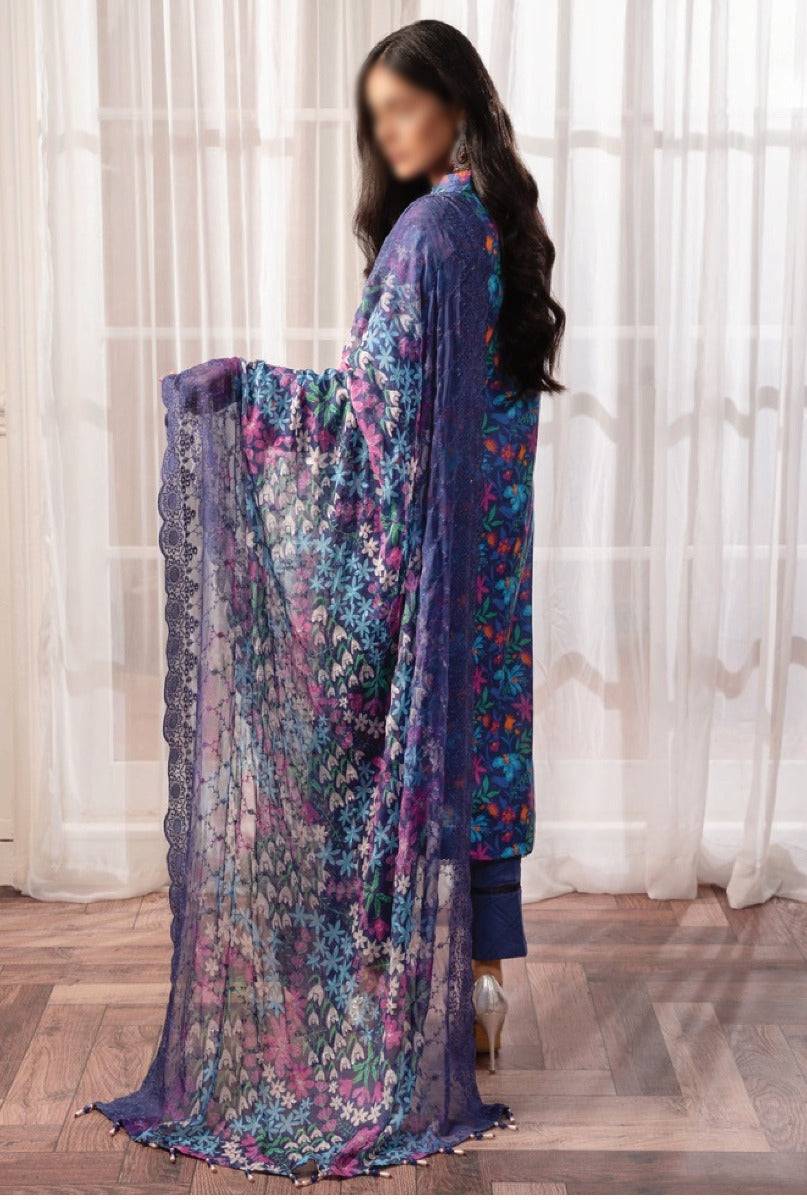 Digital Printed Chikankari Cutwork Bamber Chiffon