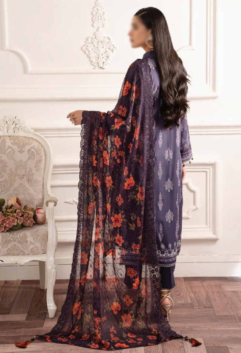 Divani by Afrozeh The Silk Edit Embroidered Raw Silk Unstitched 3 Piece Suit - AS-25-10 SAMARQAND - AF25DV - Purple - Luxury Festive Collection