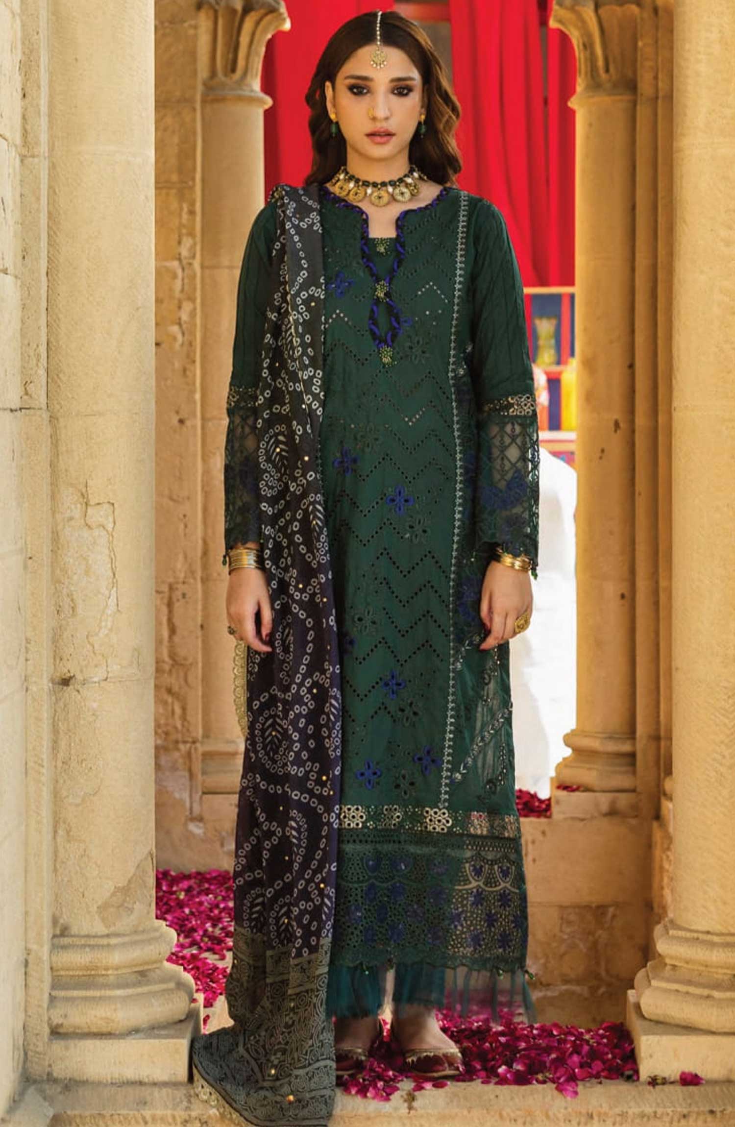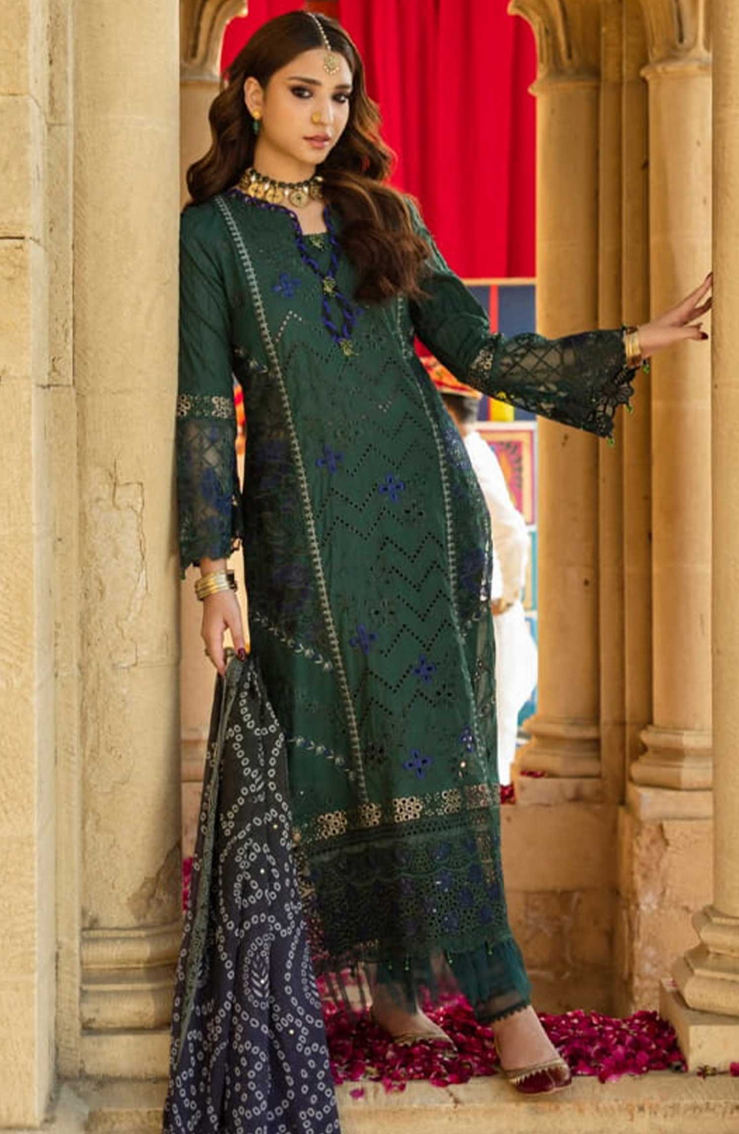 The standard style comes as a long-sleeved kameez with dupatta and trouser/shawlar.